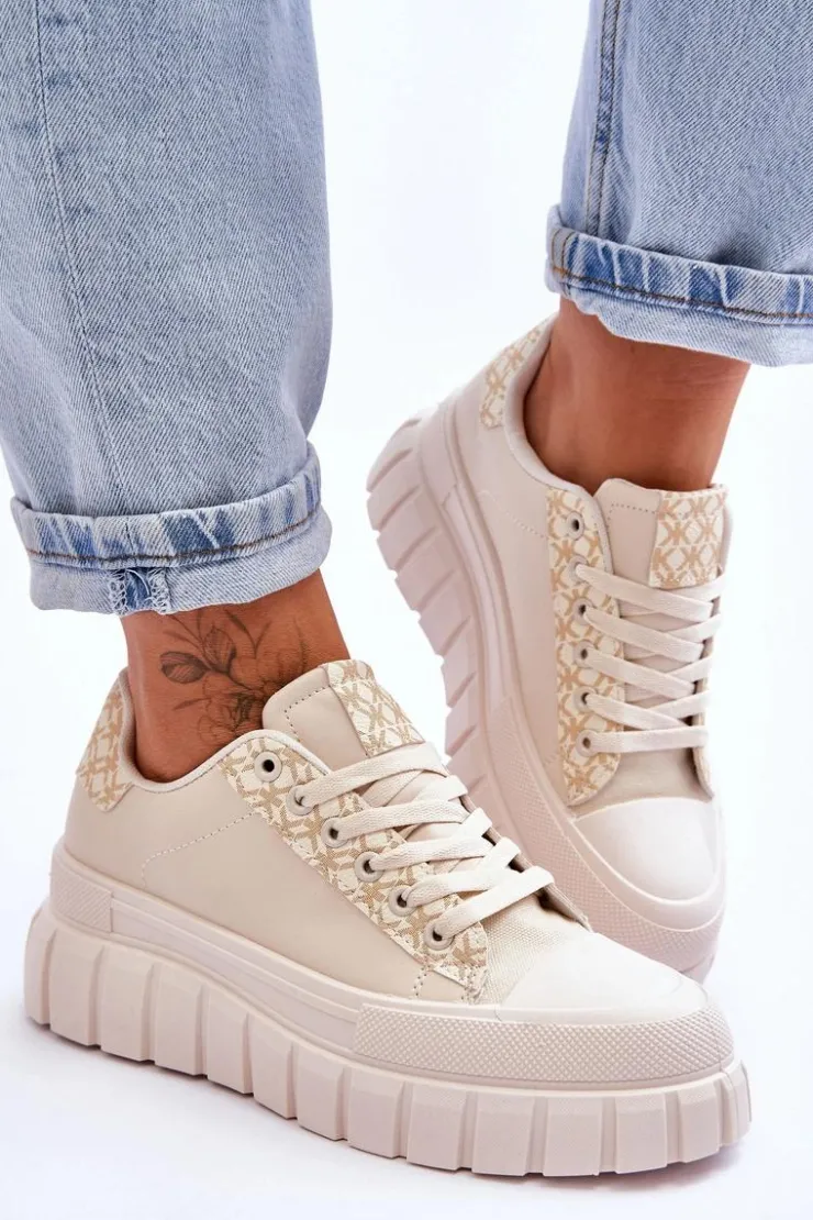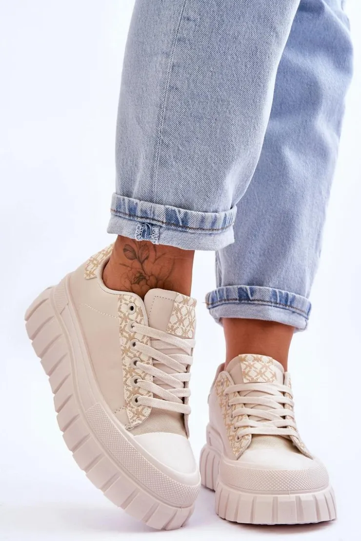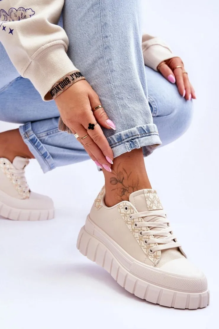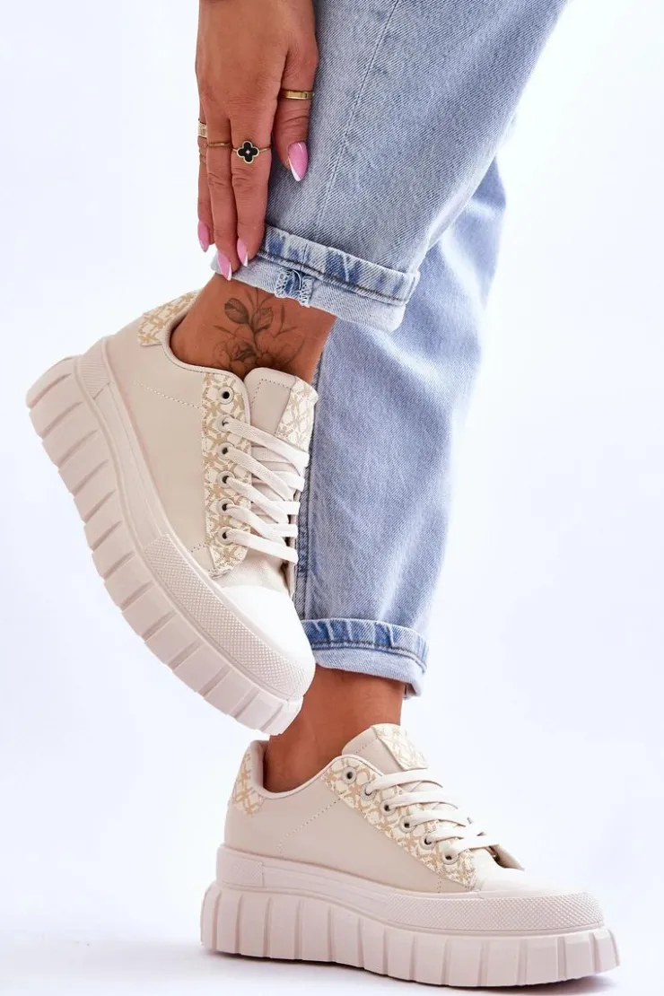 Wygodne, sportowe buty zostały wykonane z eko skóry z modnym wzorem. Model sznurowany. Buty zostały osadzone na masywnej platformie, która została wykonana z tworzywa. Miękka wkładka wykonana z materiału zapewni komfortowe użytkowanie. Nosek zaokrąglony. Model ten pasuje do wielu sportowych stylizacji. Przy wyborze rozmiaru prosimy kierować tabelą rozmiarów.
