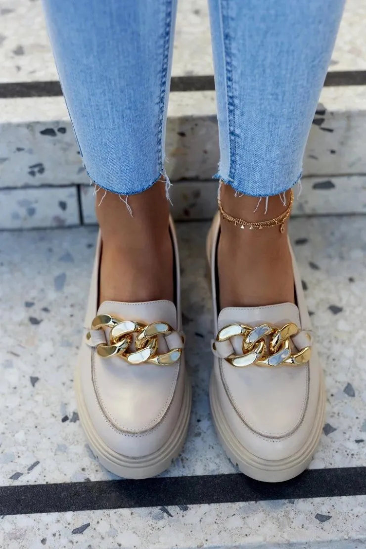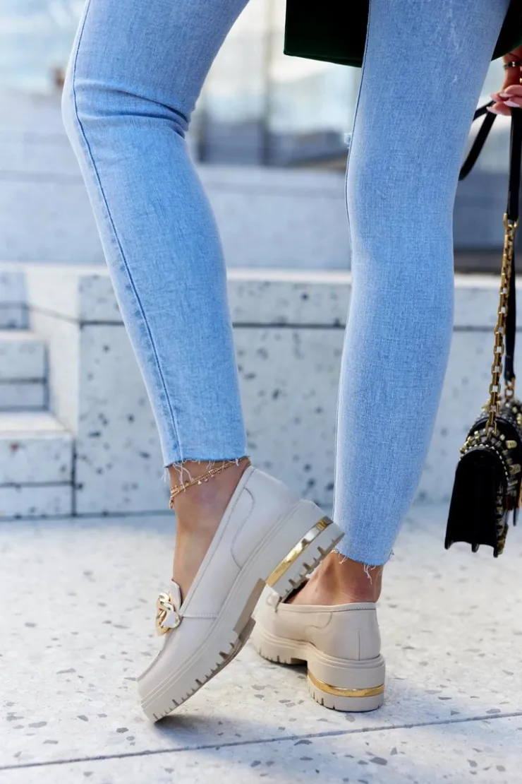 Klasyczne półbuty w stylu przepięknych loaferów! Buty zostały wykonane z wysokiej jakości skóry naturalnej. Przepiękny wzór sprawi, że stworzymy z nimi wiele wspaniałych stylizacji. Wysoka podeszwa oraz płaski obcas, który uniesie naszą sylwetkę. Ozdobny łańcuch doda Twoim stylizacjom elegancji. Przy wyborze rozmiaru prosimy sugerować się tabelą rozmiarów.