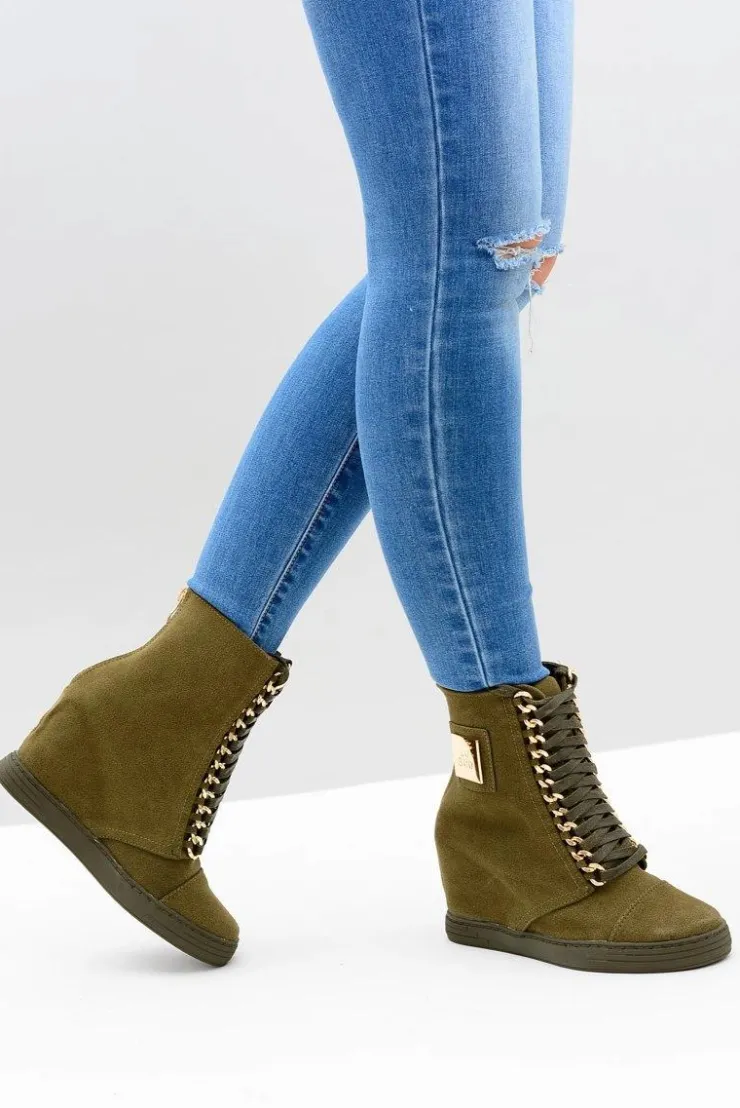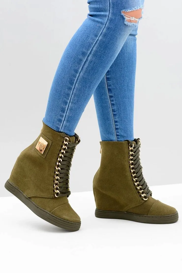 Online Boto Damskie Sneakersy Lu Boo Z Łańcuchami Zamszowe Oliwkowe Monica