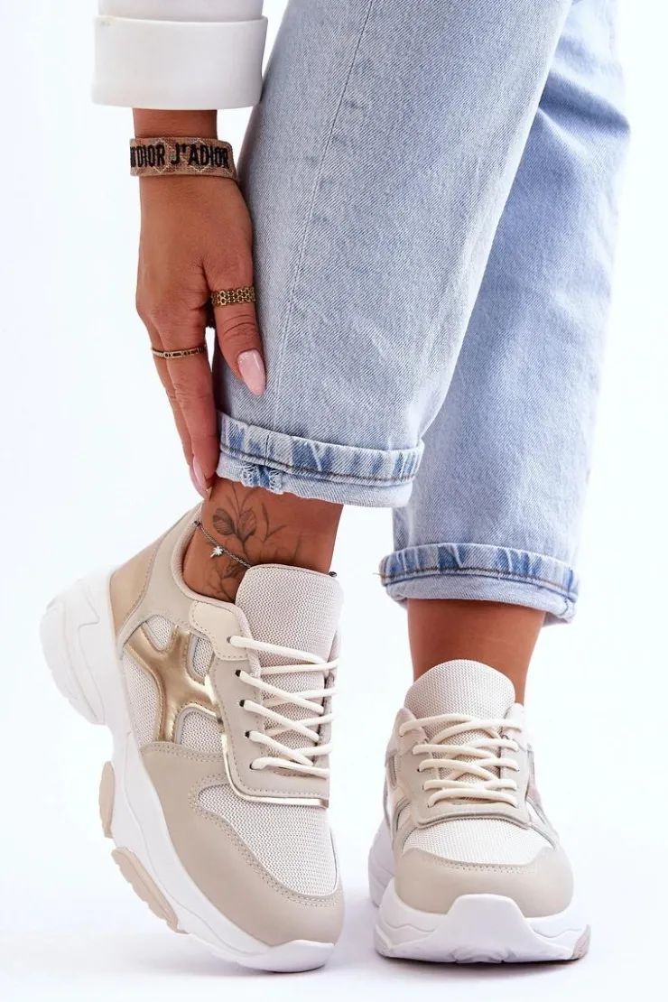 Damskie buty sportowe zostały wykonane z połączenia eko skóry oraz materiału tekstylnego. Model klasycznie sznurowany pozwoli na odpowiednie dopasowanie obuwia do tęgości nogi. Buty zostały osadzone na masywnej platformie z płaskim obcasem. Wkładka z tkaniny zapewni komfortowe użytkowanie obuwia. Te modne sneakersy na pewno sprawdzą się w wielu stylizacjach! Przy wyborze rozmiaru prosimy sugerować się tabelą rozmiarów.