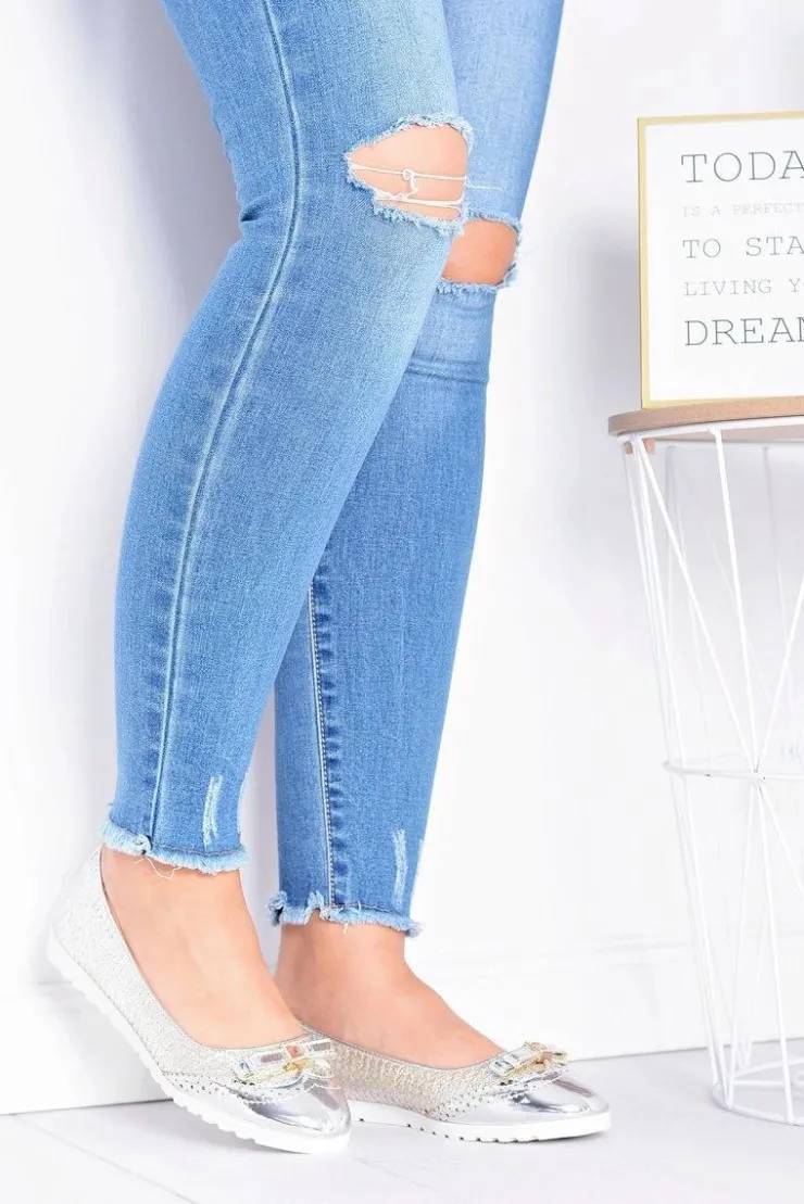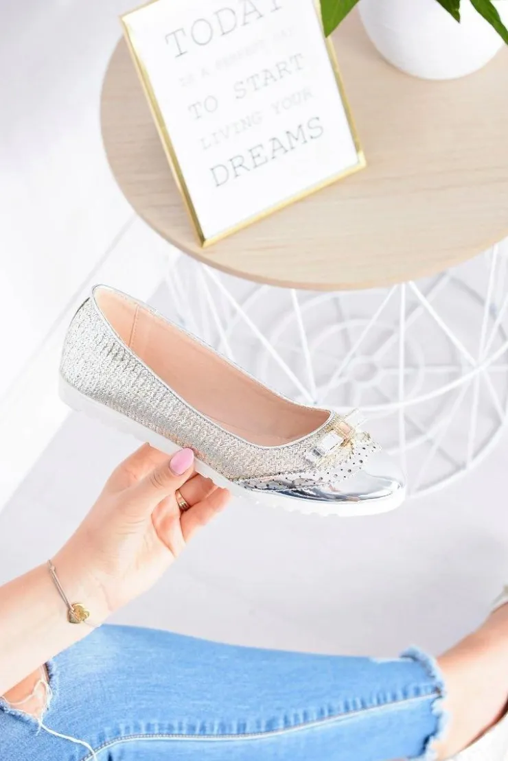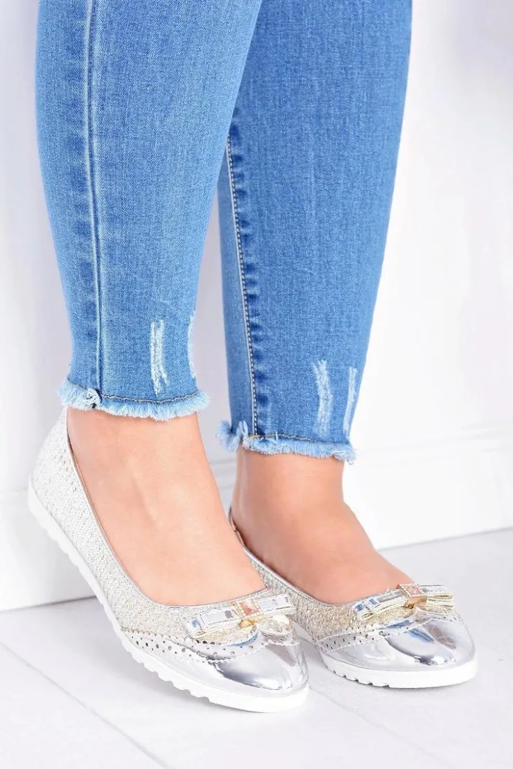 Online Boto Damskie Srebrne Wsuwane Balerinki Z Kokardką Cleoss