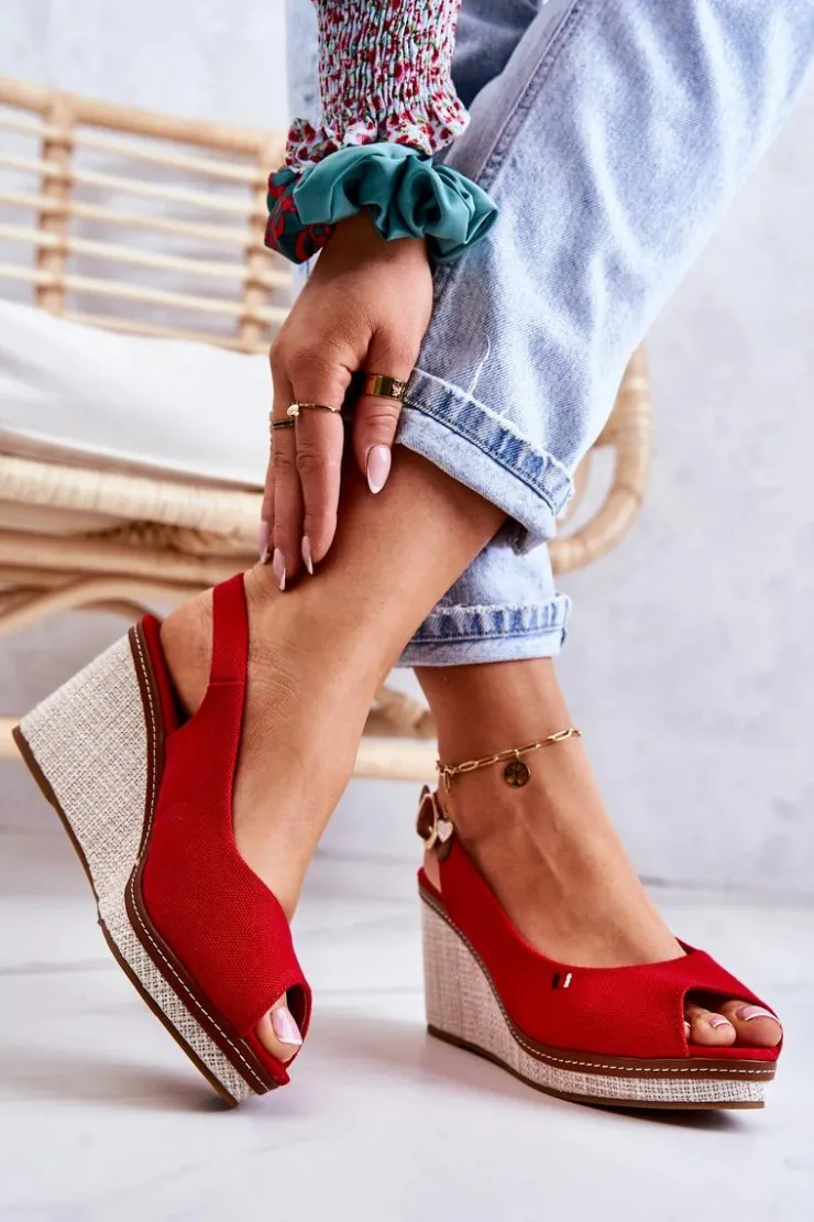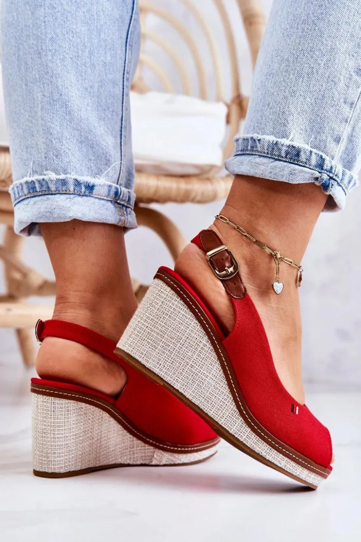 Piękne i wygodne sandały osadzone na obcasie w postaci koturnu. Modny kolor oraz ponadczasowy wzór. Sandały posiadają antypoślizgową podeszwę oraz koturn z plecionki. Wykonane z materiału tekstylnego. Posiadają regulowany pasek zapinany na sprzączkę. Posiadają odkrytą piętę i palce. Wkładka wykonana z połączenia materiału oraz wstawki z eko skóry. Koniecznie sprawdź całą naszą ofertę damskich sandałów! Przy wyborze rozmiaru prosimy sugerować się tabelą rozmiarów.