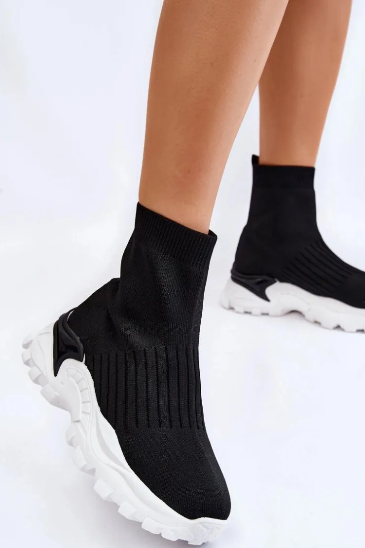 Buty sportowe zostały wykonane z materiału tekstylnego z wysoką cholewką sięgającą za kostkę. Nosek zaokrąglony. Model wsuwany ze ściągaczem u góry cholewki. Wykonane z elastycznego materiału, który dobrze dopasuje się do stopy. Wkładka z materiału jest wyciągana. Osadzone na płaskim obcasie i platformie. Przy wyborze rozmiaru prosimy kierować się tabelą rozmiarów.
