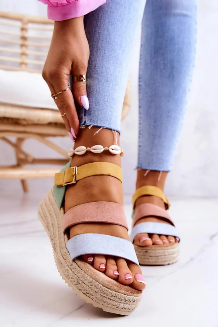 Sandały na niewysokim koturnie, wykończone jutowym warkoczem. Z szerokimi paskami oraz regulowanym paskiem przy kostce zapinanym na kwadratową sprzączkę. Wyposażone w miękką, komfortową wkładkę. Wykonane z zamszowej eko skóry. Te sandały idealnie sprawdzą się do basicowych stylizacji, sukienek boho czy nawet klasycznych jeansów. Przy wyborze rozmiaru prosimy kierować się tabelą rozmiarów.