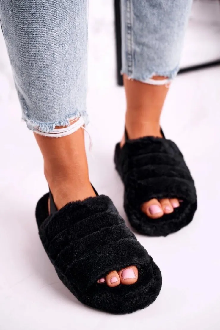Wygodne futrzane klapki na platformie. Buty wykonane są w całości z ekologicznego futerka. Szeroki ściągacz zapewni dopasowanie do stopy! Przy wyborze rozmiaru prosimy sugerować się tabelą rozmiarów.