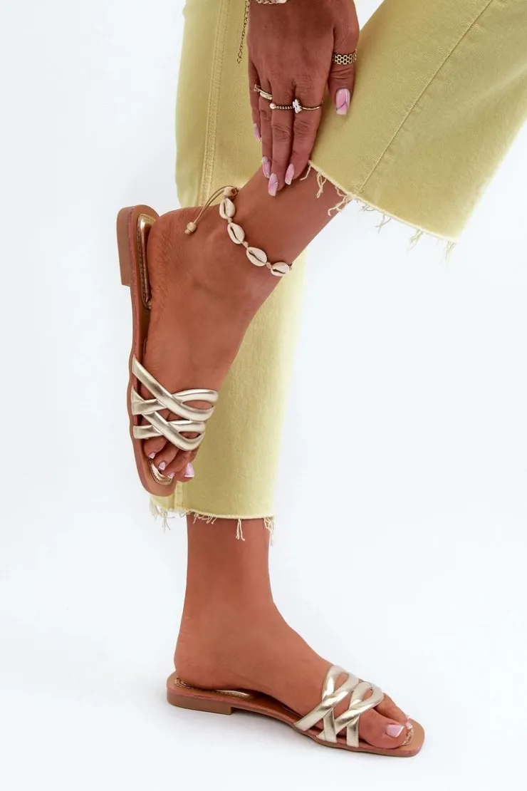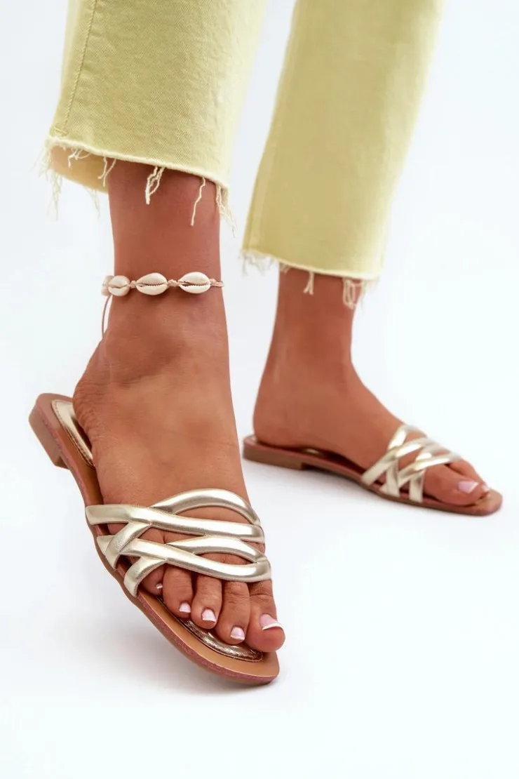 Klapki damskie wykonane z eko skóry. Płaski obcas sprawia, że są niezwykle wygodne podczas długich spacerów czy letnich wypadów. Modny design pozwala na swobodne łączenie ich zarówno z sukienkami, jak i spodniami, nadając letniej stylizacji niepowtarzalnego uroku. Model ten będzie pasować na wąską stopę. Przy wyborze rozmiaru prosimy sugerować się tabelą rozmiarów.