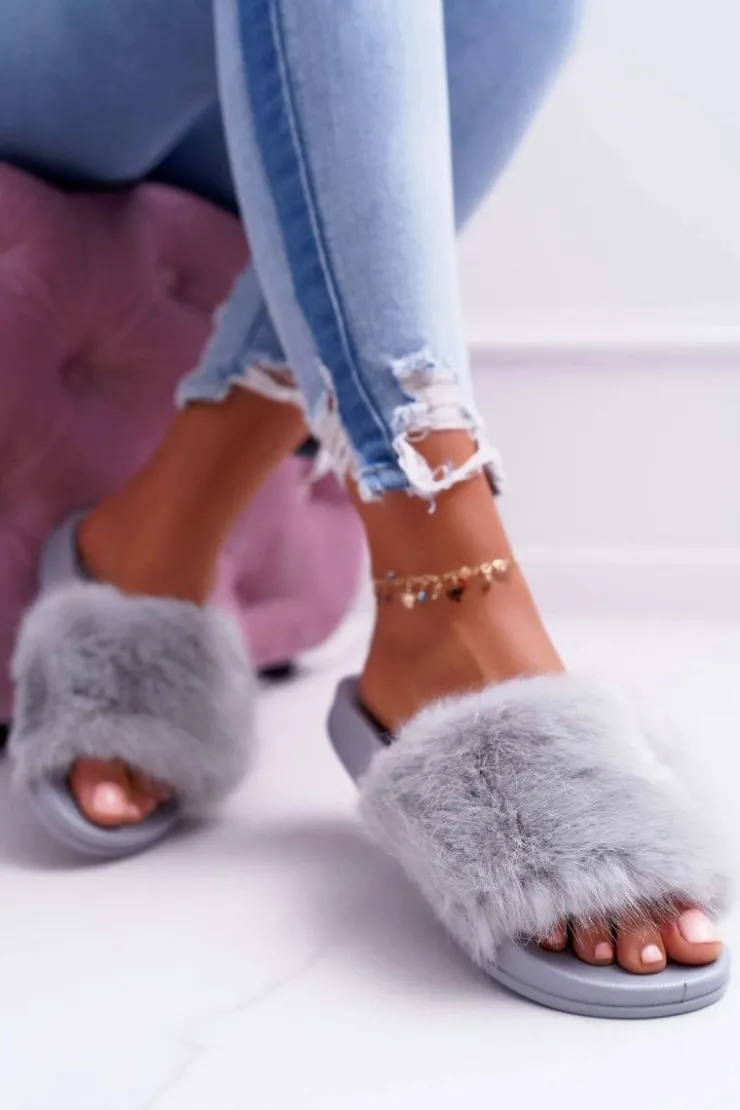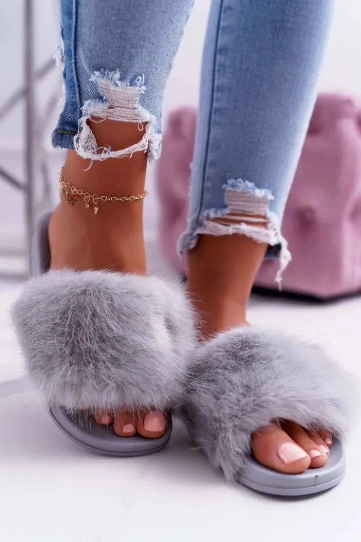 Online Boto Klapki Damskie z Futerkiem Jasno Szare NiceFur