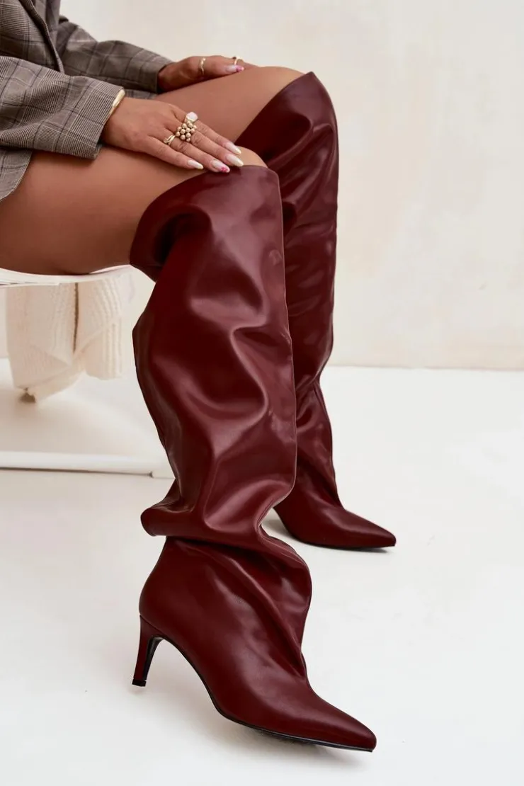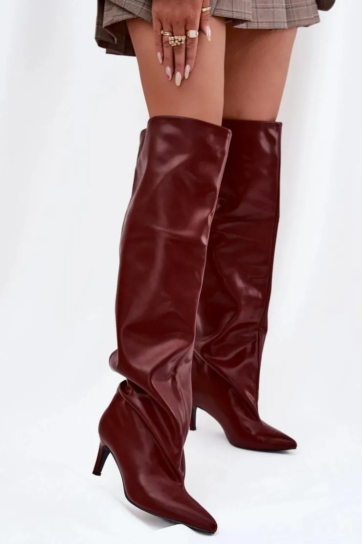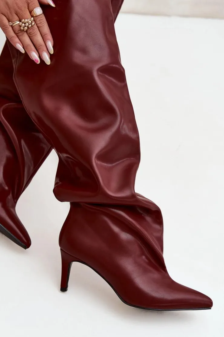 Kozaki damskie na szpilce wsuwane bordowy Mavilla
