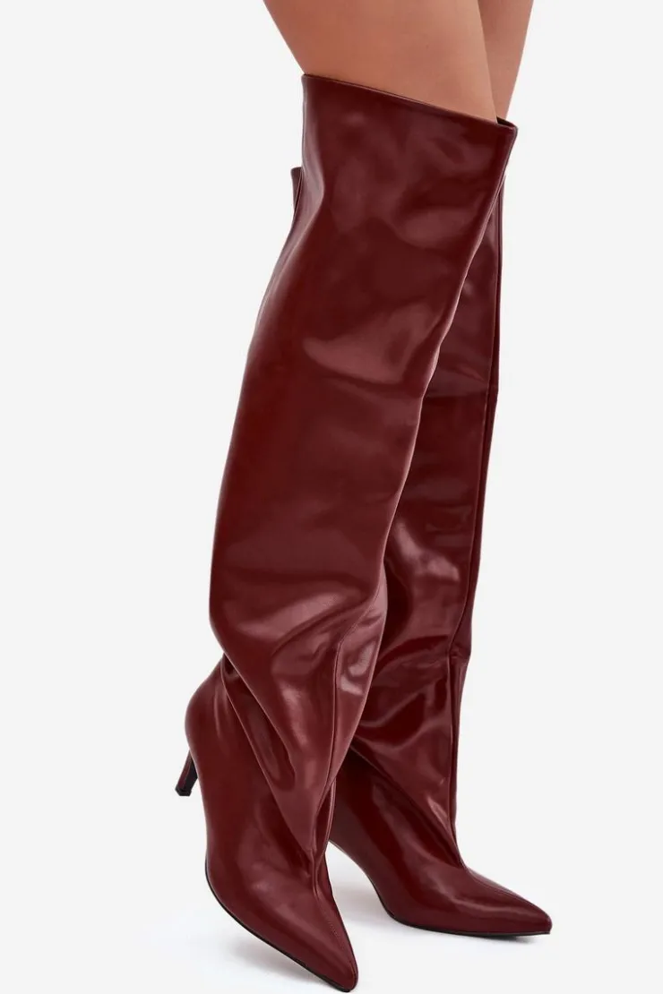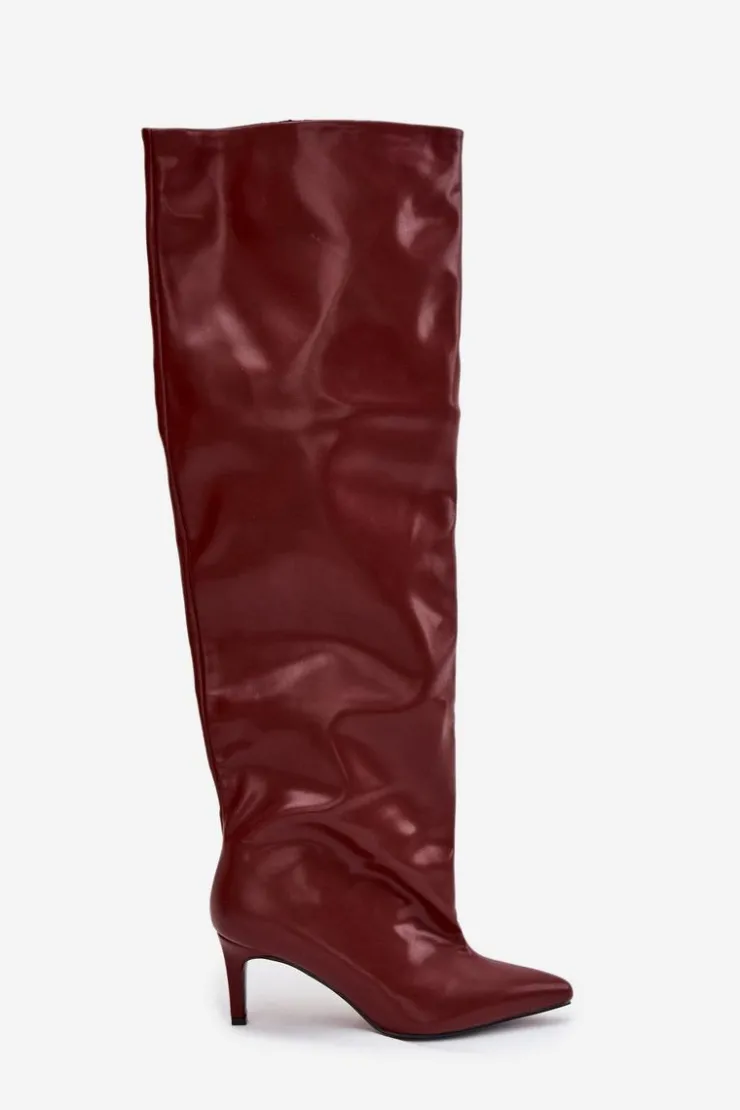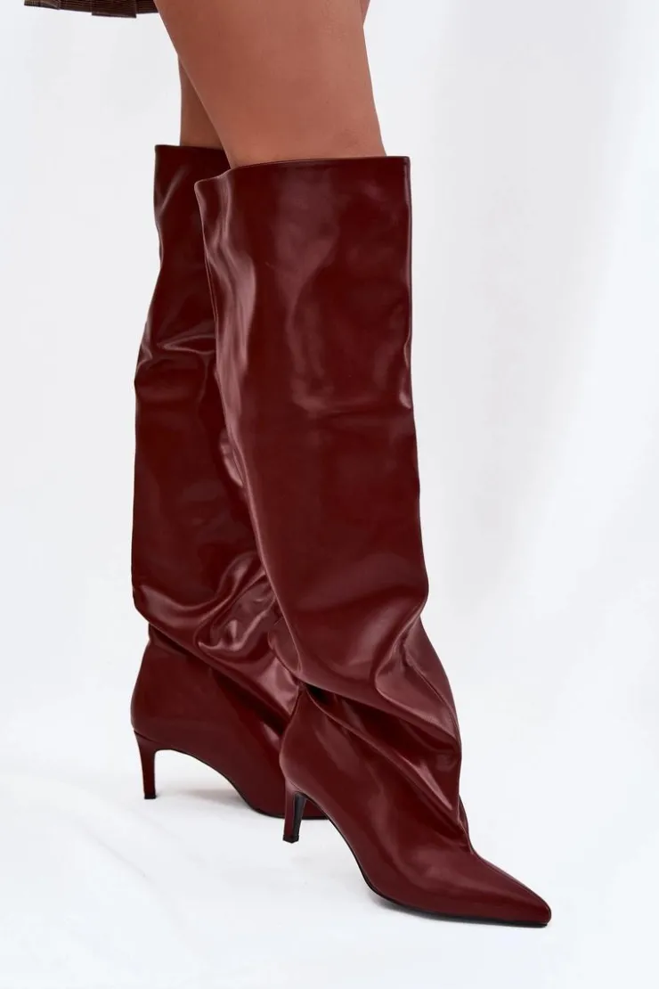 FAQ — Kozaki damskie na szpilce wsuwane bordowy Mavilla