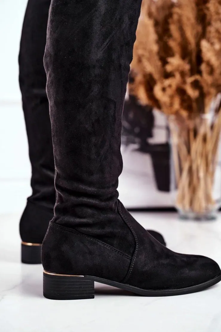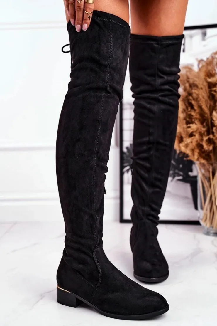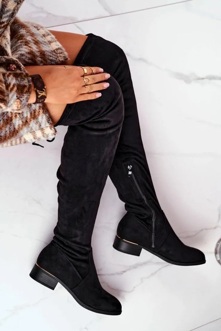 Online Boto Kozaki Damskie Za Kolano Eko-Zamsz Czarne Dove