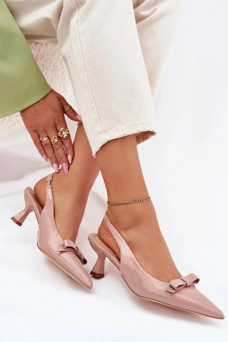 Sandały damskie z eko skóry na niskiej szpilce to elegancka propozycja na specjalne okazje. Szpiczaste noski dodają im smukłości, a subtelna kokardka z przodu nadaje im kobiecego uroku. Stylowy i elegancki wygląd sprawia, że te sandały będą doskonałym wyborem na wieczorne wyjścia, wesela czy inne uroczystości. Przy wyborze rozmiaru prosimy sugerować się tabelą rozmiarów.