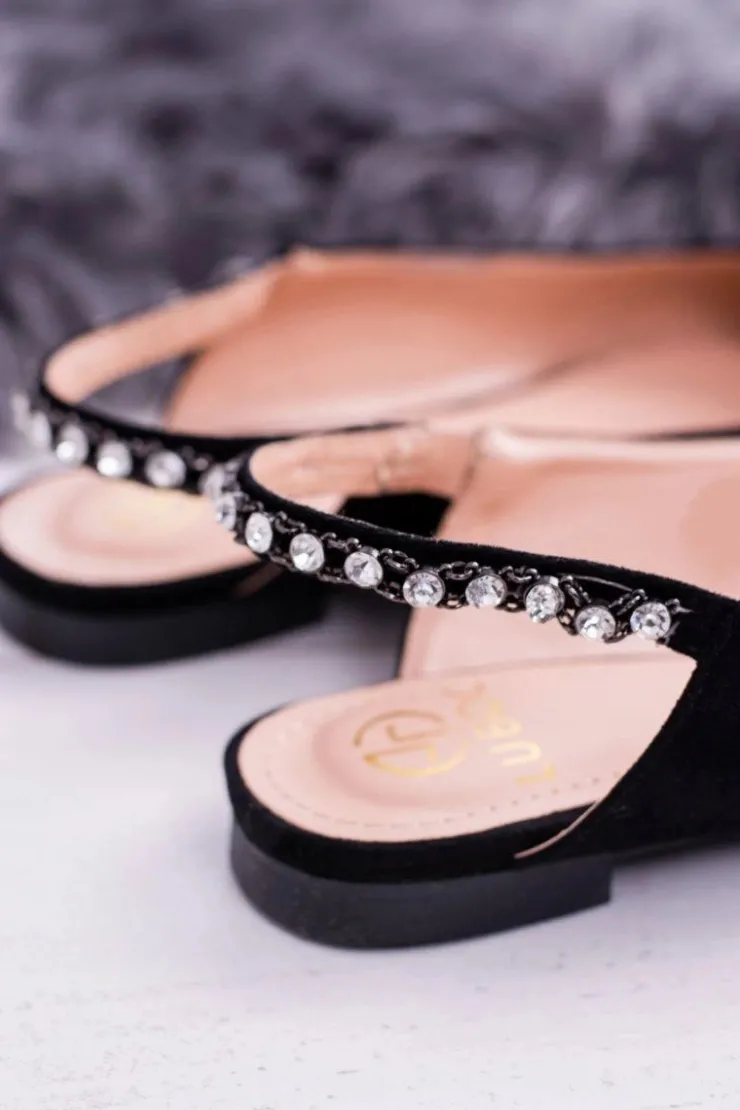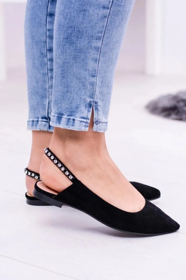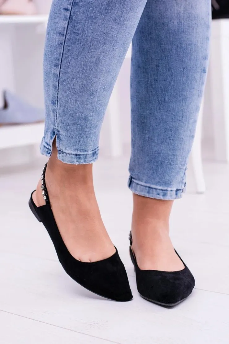 Online Boto Lu Boo Czarne Zamszowe Balerinki w Szpic Cyrkonie Macron