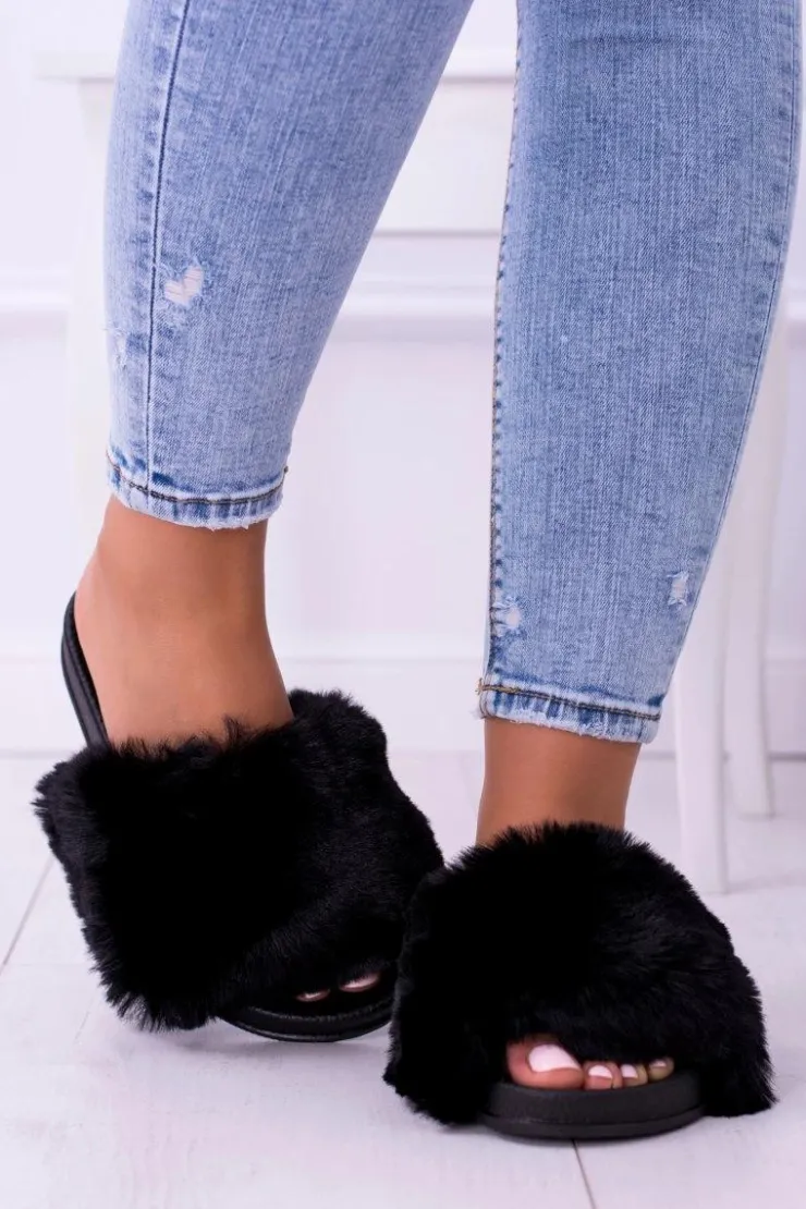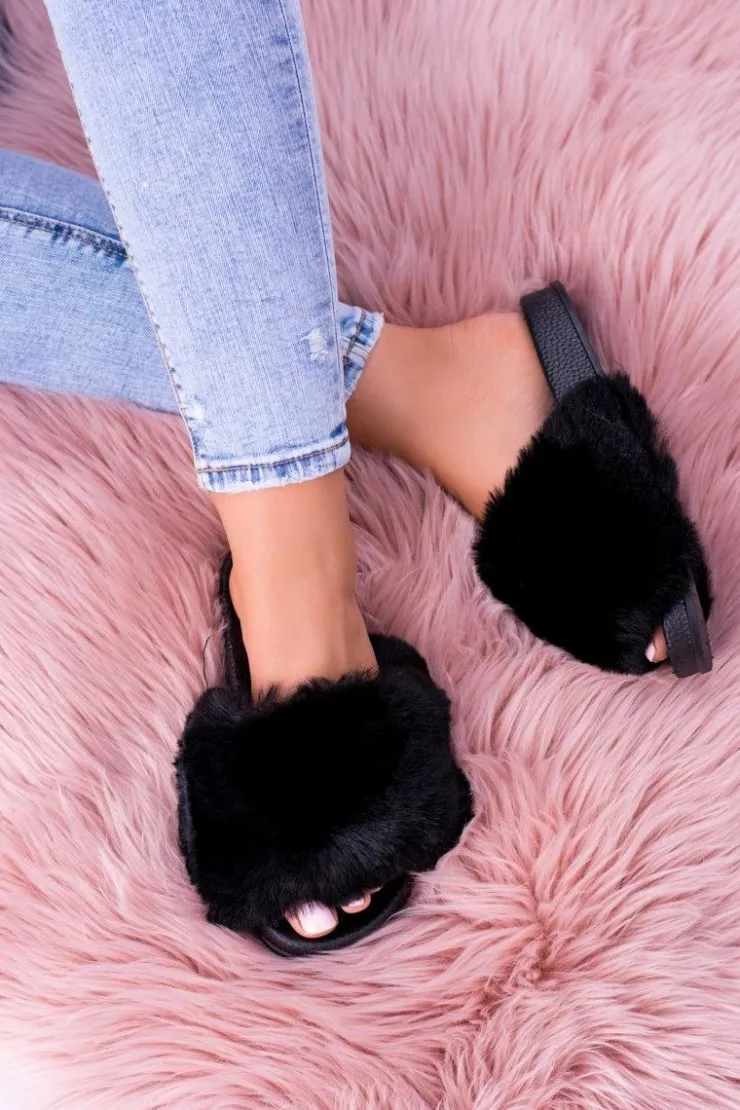Online Boto Lu Boo Damskie Klapki Z Futerkiem Czarne Fur XXL