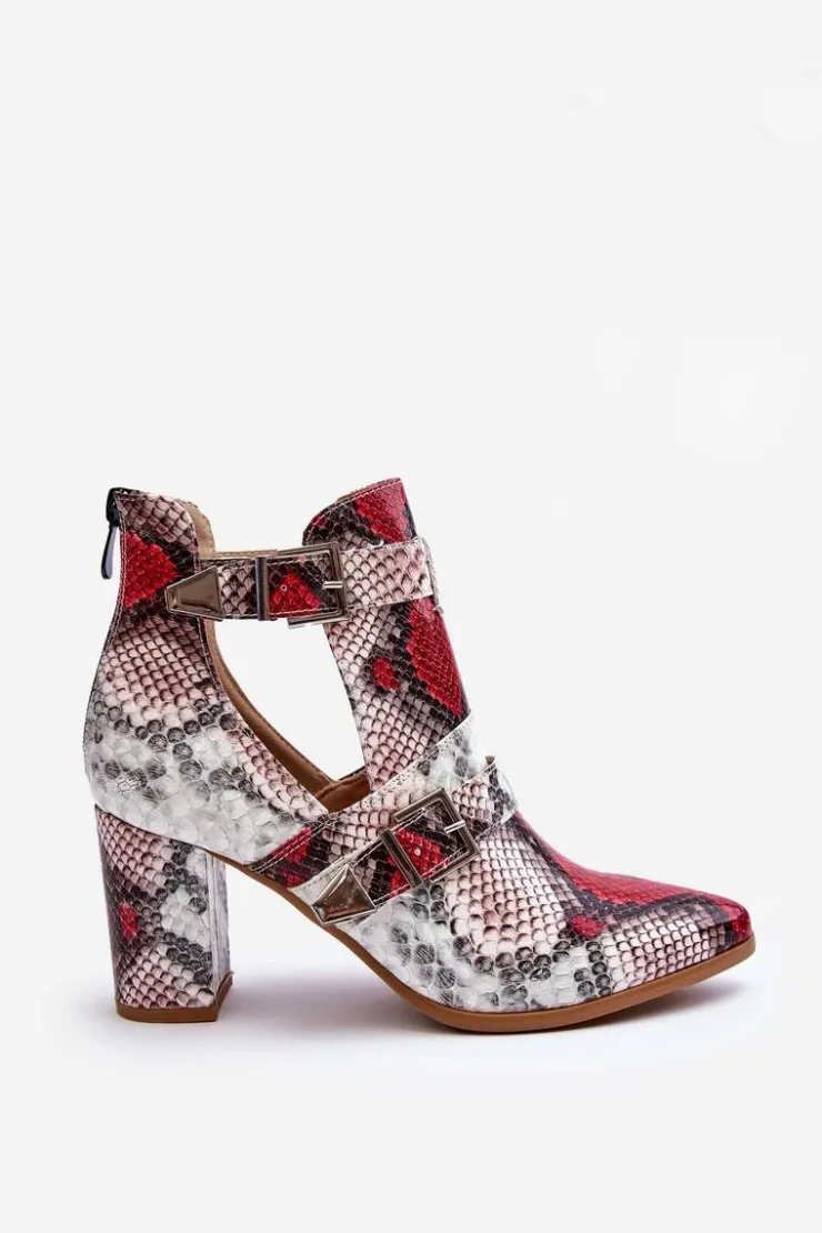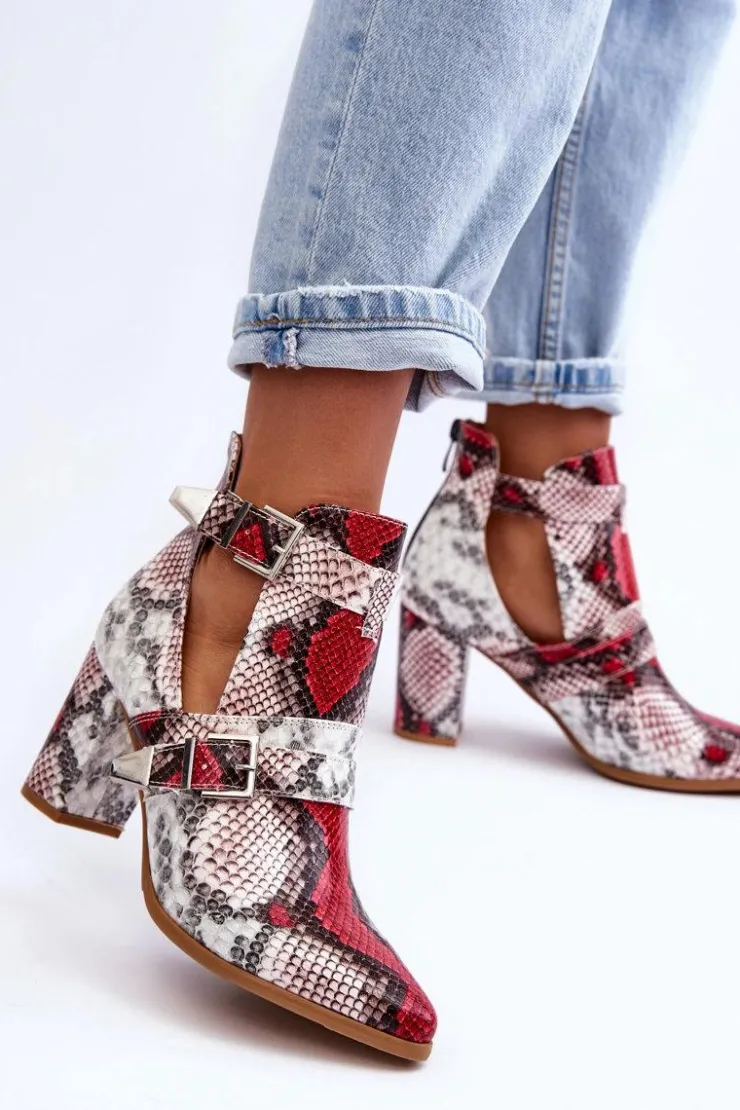 Niezwykłe botki posiadają z boku wycięcia oraz klamry. Z tyłu cholewki znajduje się suwak. Botki zostały wykonane z eko skóry. Osadzone na obcasie w postaci słupka. Nosek w szpic optycznie wysmukli stopę. Wkładka wykonana z tkaniny zapewni wygodę podczas użytkowania. Koniecznie powinnaś sprawdzić pozostałe modele botek! Podczas wyboru rozmiaru prosimy kierować się tabelą rozmiarów.