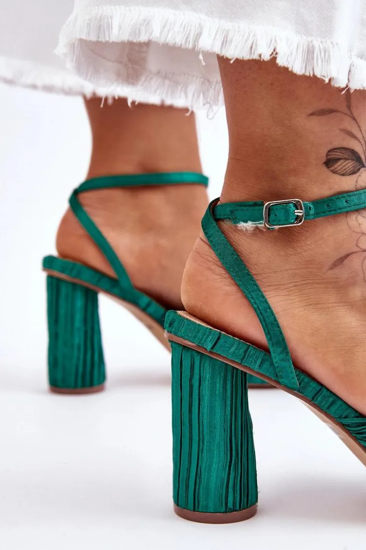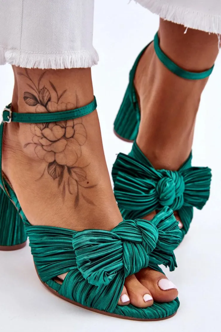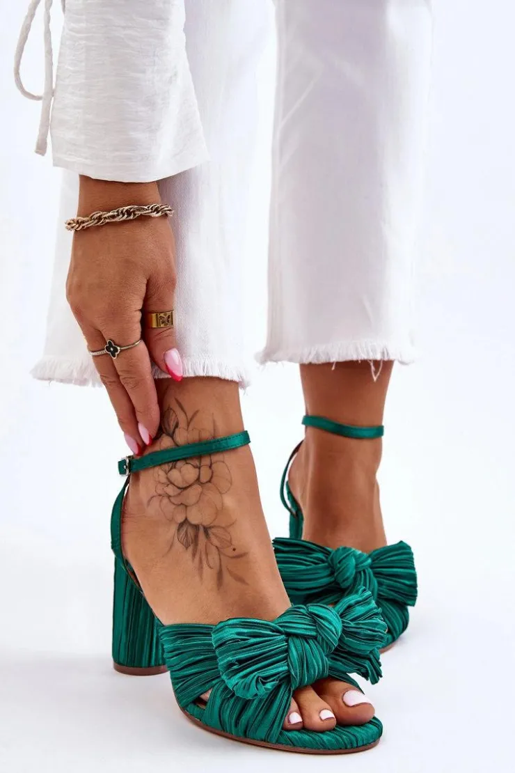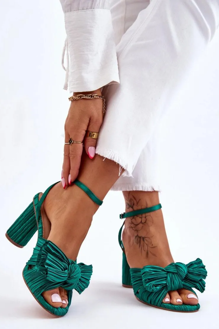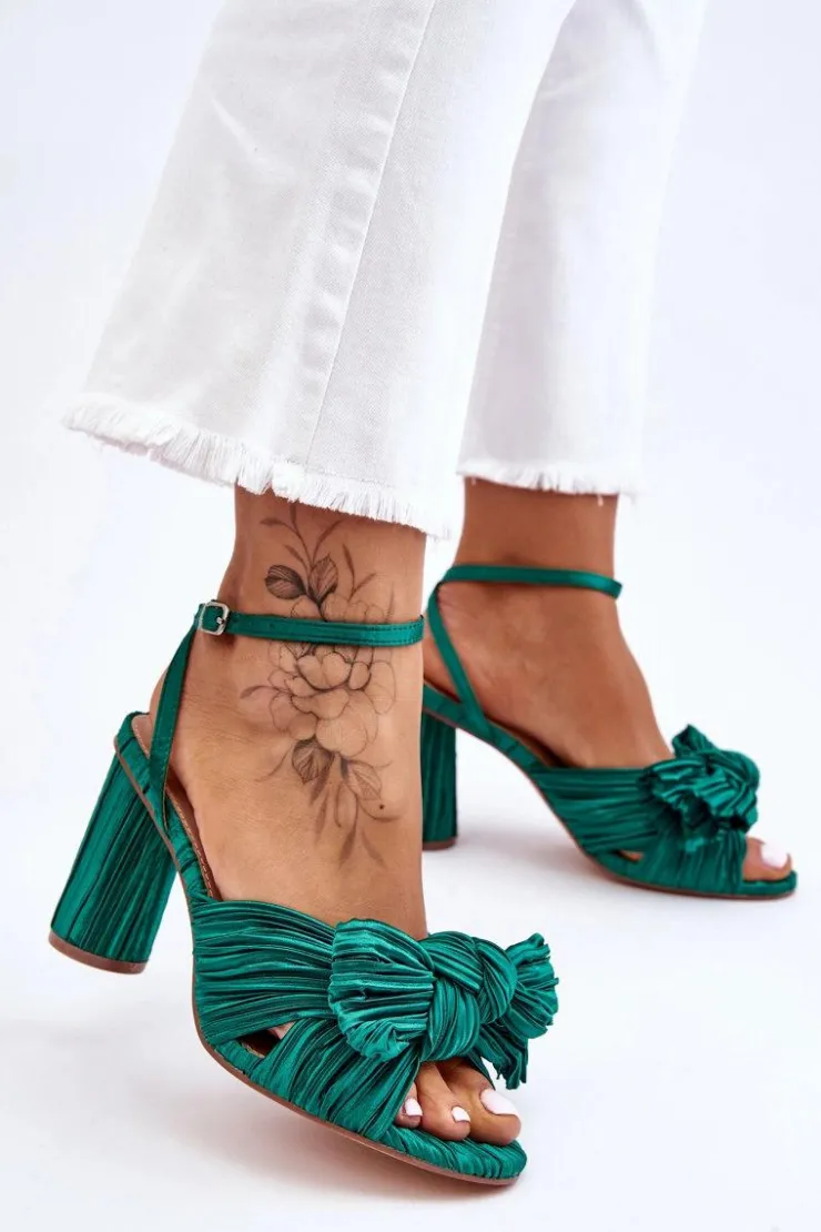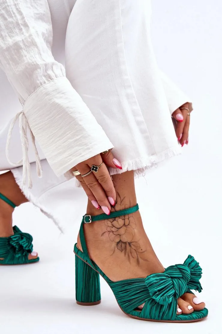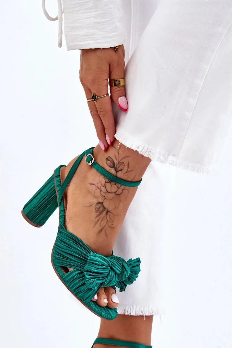 Wyjątkowe sandały na obcasie w postaci stabilnego słupka. Buty te posiadają z przodu kokardę, która dodaje tym butom elegancji. Miękka wkładka z eko skóry zadba o Twój komfort podczas użytkowania. Model ten świetnie sprawdzi się na różnego rodzaju ważnych uroczystościach. Ten model na pewno Ci się spodoba! Przy wyborze rozmiaru prosimy sugerować się tabelą rozmiarów.