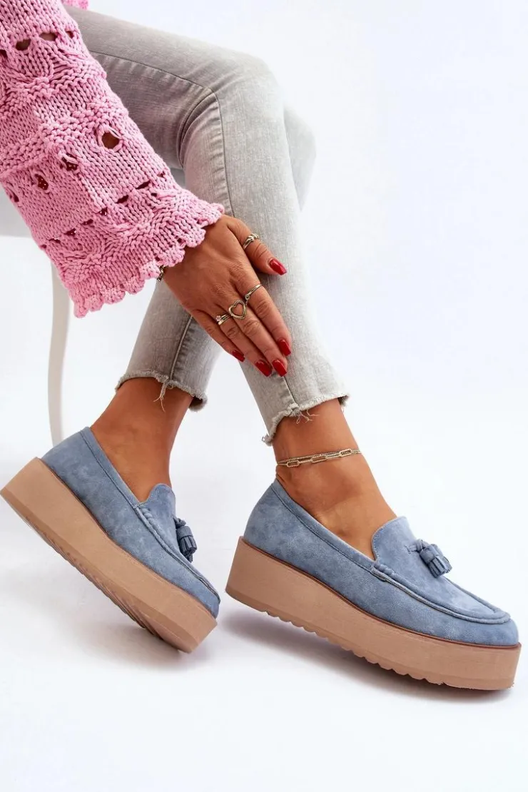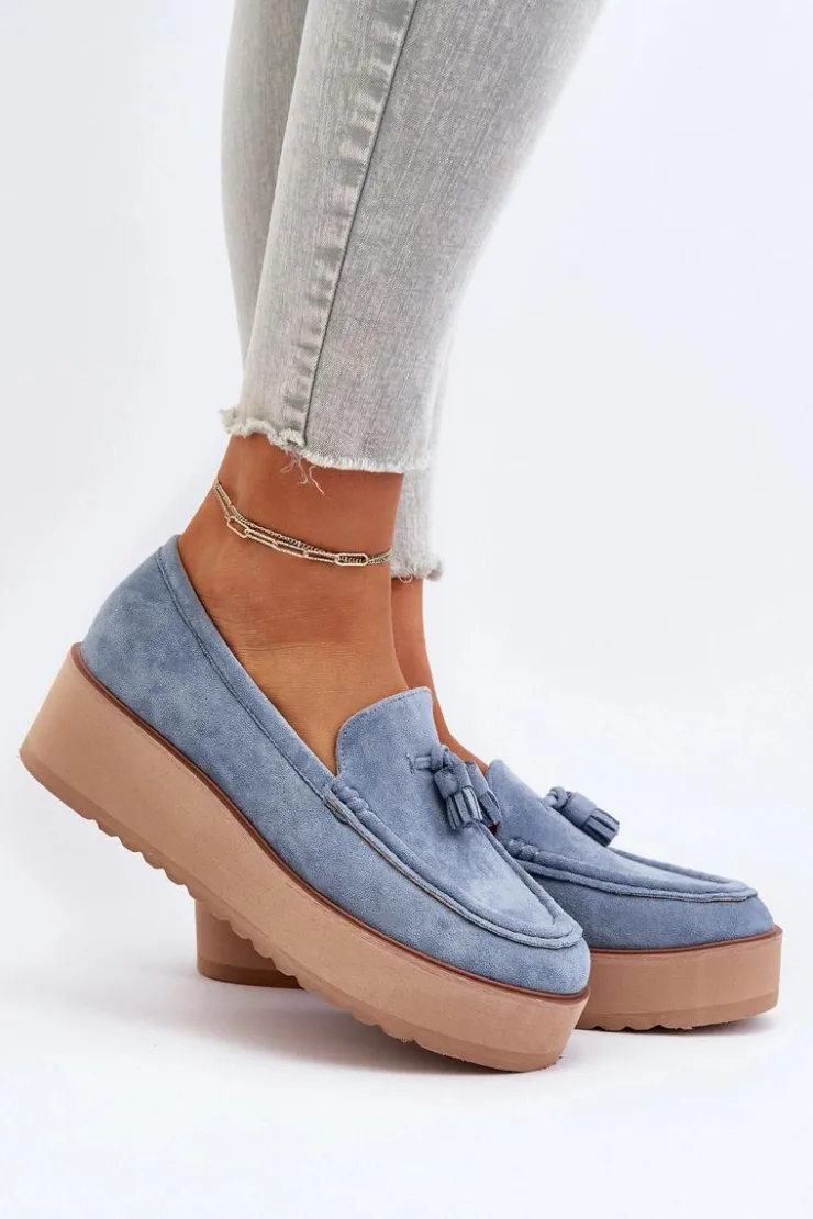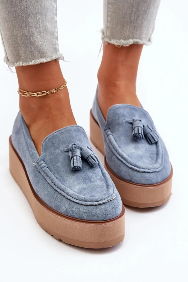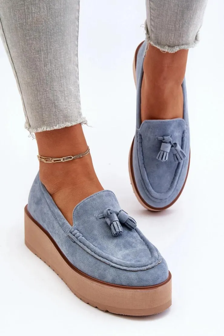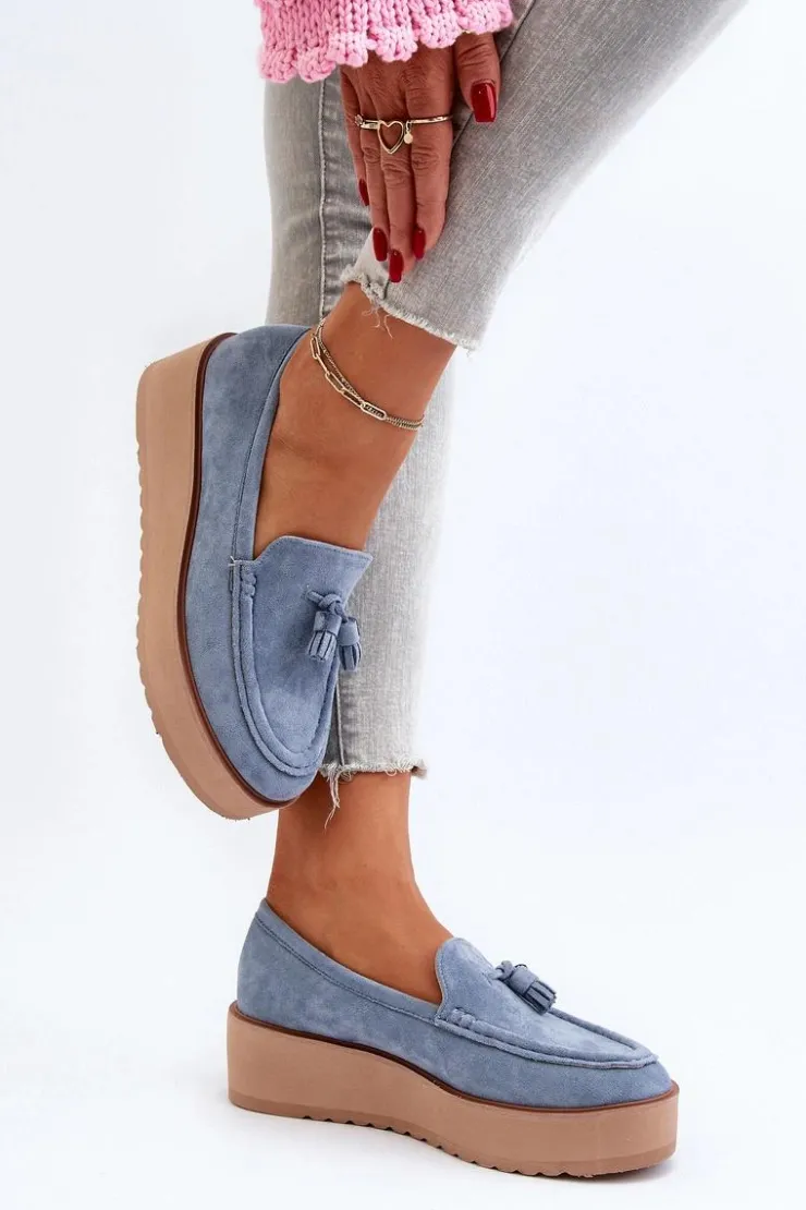Klasyczne mokasyny damskie osadzone na platformie. Ozdobne frędzle na przodzie nadają im unikalnego stylu. Noski zaokrąglone, lekko usztywniony zapiętek. Idealne zarówno do casualowych, jak i bardziej wyrafinowanych stylizacji, te mokasyny będą doskonałym dodatkiem do Twojej garderoby! Przy wyborze rozmiaru prosimy sugerować się tabelą rozmiarów.