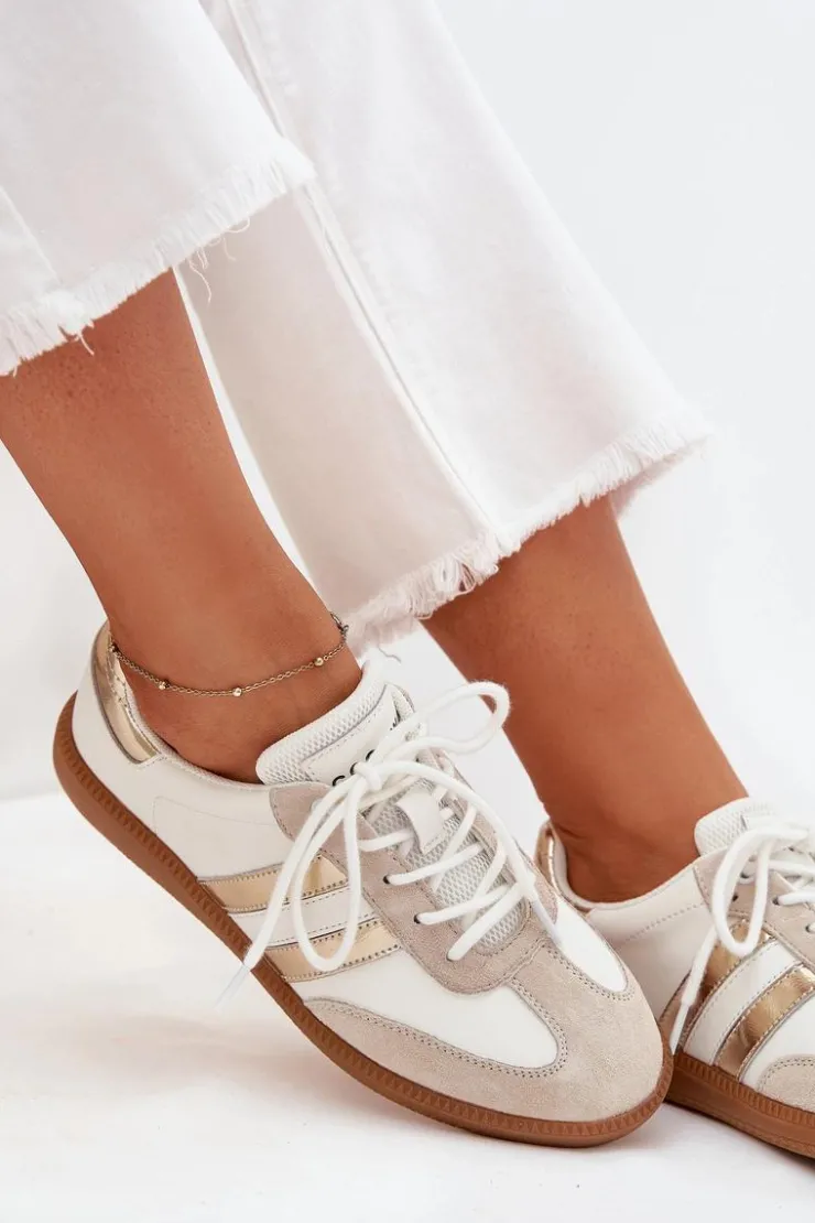 Sneakersy damskie wykonane z połączenia naturalnej skóry i zamszu, z niską cholewką, to idealna propozycja dla osób ceniących wygodę i modny wygląd. Skórzana wkładka zapewnia komfort przez cały dzień, a stylowy design sprawia, że buty pasują zarówno do spodni, spódnic, jak i sukienek. Z pewnością staną się Twoim ulubionym elementem codziennych stylizacji. Przy wyborze rozmiaru prosimy kierować się tabelą rozmiarów.