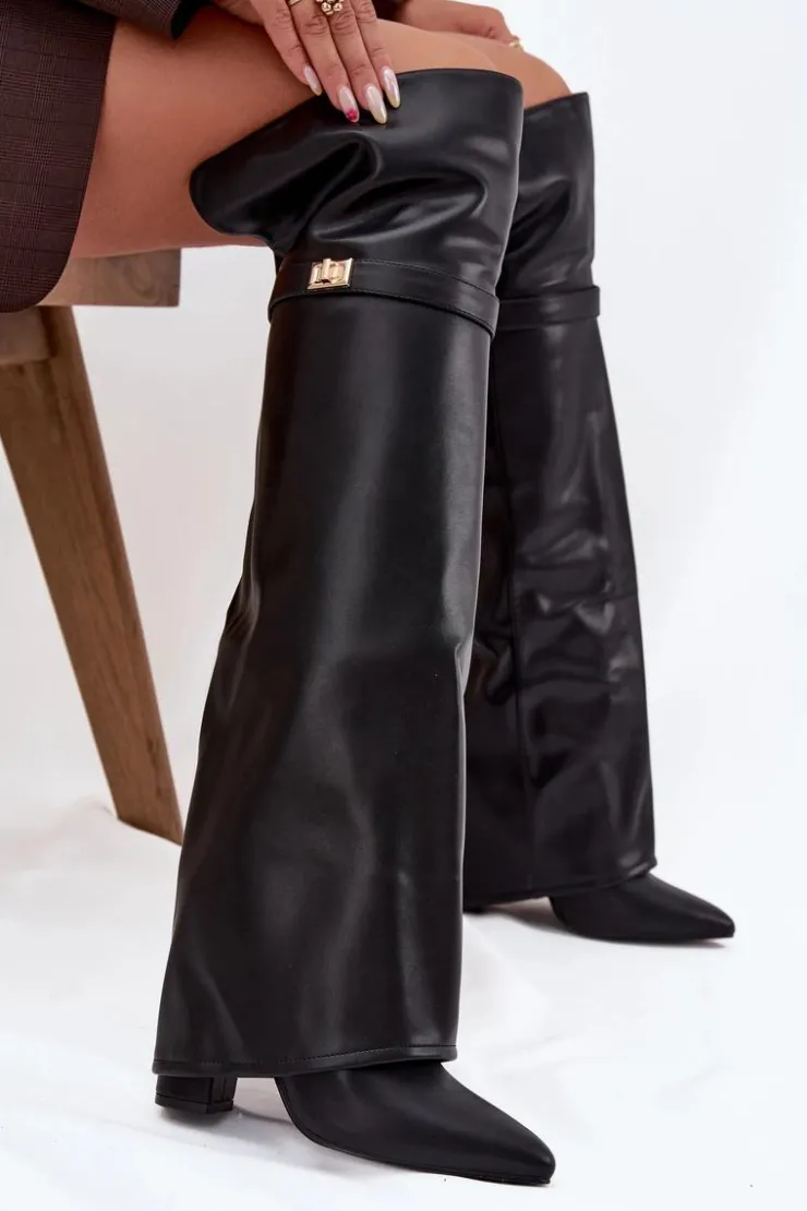 Kozaki damskie z wywiniętą cholewką to prawdziwy hit nadchodzącego sezonu jesienno-zimowego! Cholewka sięga za kolano i nachodzi na obcas dodaje im niepowtarzalnego charakteru. Osadzone na stabilnym obcasie typu słupek, zapewniają komfort i elegancję, a ocieplenie gwarantuje ciepło w chłodniejsze dni. Wsuwane i z noskami w szpic, łączą w sobie wygodę z modnym, kobiecym stylem – idealne do tworzenia efektownych, zimowych stylizacji. Przy wyborze rozmiaru prosimy sugerować się tabelą rozmiarów.
