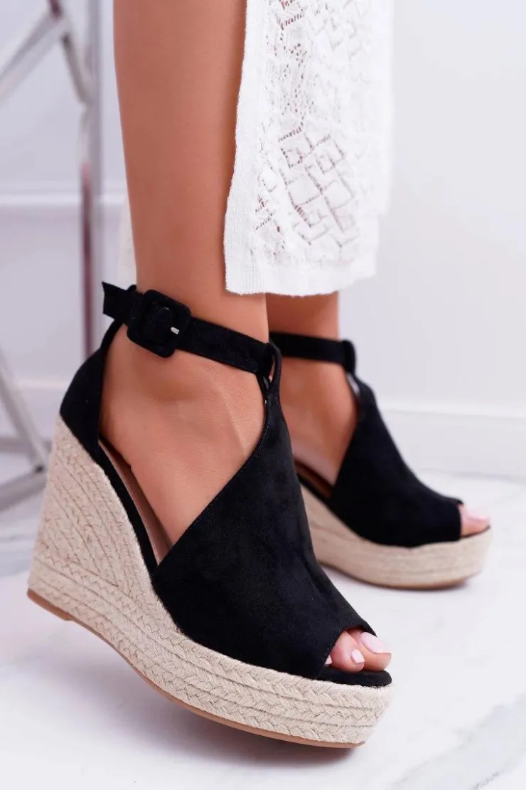 Poczuj lato już dziś i przymierz naszą najnowszą propozycje zamszowych sandałek na wysokim koturnie. Zakochaj się w nich i pokaż wszystkim swoje najlepsze stylizacje. Piękny, elegancki wygląd sprawi, że poczujesz się w nich komfortowo! Posiadają wysoką platformę pod palcami oraz stabilny koturn. Koniecznie sprawdź nasze pozostałe modele sandałek.