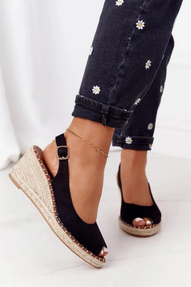 Piękne oraz wygodne sandały na koturnie wykonane z eko zamszu. Buty posiadają miękką wkładkę z eko skóry oraz antypoślizgową podeszwę. Modny fason urozmaici Twoją garderobę! Koniecznie sprawdź całą naszą kolekcję damskich sandałów! Przy wyborze rozmiaru prosimy sugerować się tabelą rozmiarów.