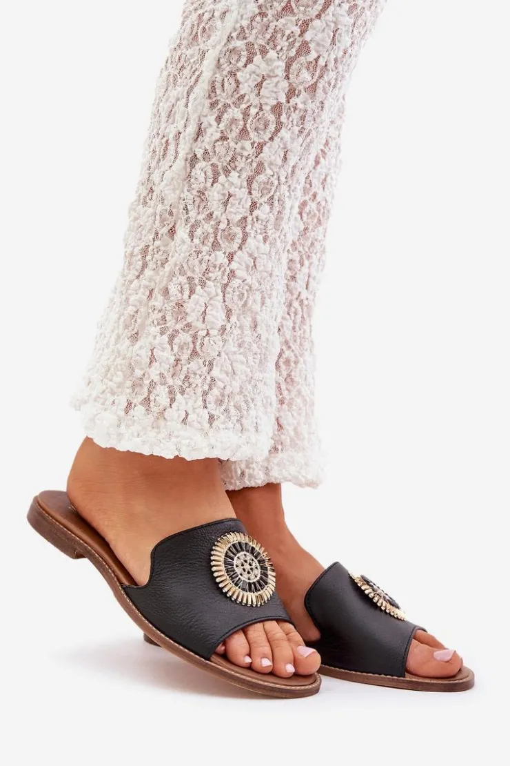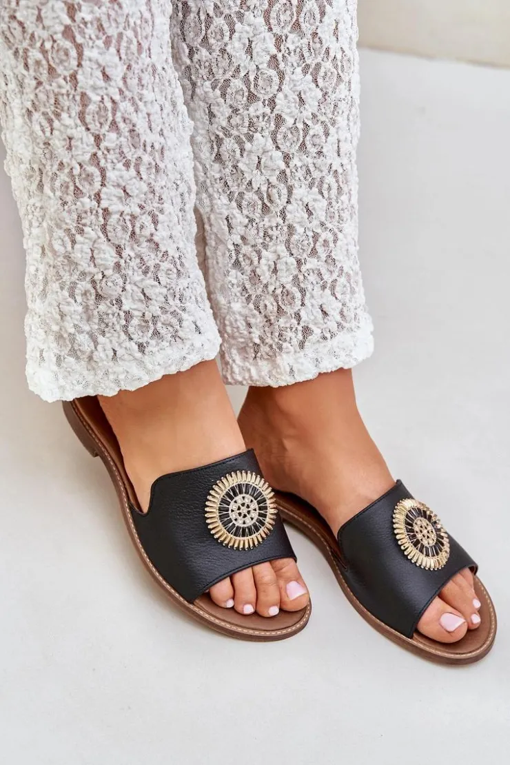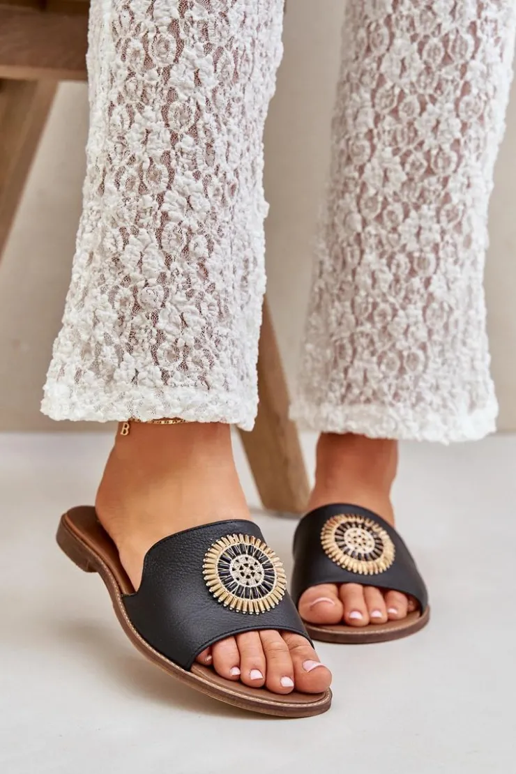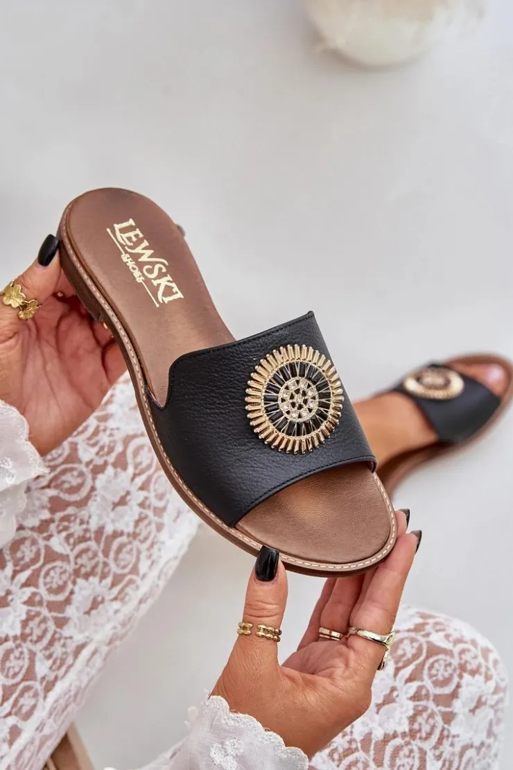 Damskie klapki wykonane z wysokiej jakości skóry naturalnej to połączenie elegancji i wygody. Osadzone na płaskim obcasie, zapewniają komfort noszenia przez cały dzień. Subtelna ozdoba na cholewce nadaje im wyjątkowego uroku i klasy, dzięki czemu świetnie sprawdzą się zarówno w casualowych, jak i bardziej eleganckich stylizacjach. Idealne na ciepłe dni, stanowią niezastąpiony dodatek do letnich sukienek, spodni czy spódnic. Przy wyborze rozmiaru prosimy sugerować się tabelą rozmiarów.