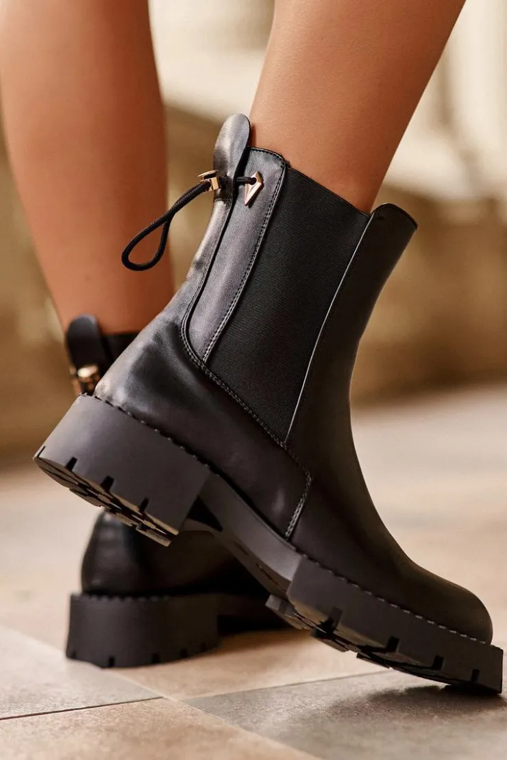 Damskie botki wykonane z eko skóry. Model wsuwany z ocieplanym środkiem. Noski zaokrąglone. Sztyblety zostały osadzone na płaskim obcasie, który zapewni stabilność na każdym kroku. Koniecznie powinnaś mieć ten model w swojej szafie! Przy wyborze rozmiaru prosimy sugerować się tabelą rozmiarów.