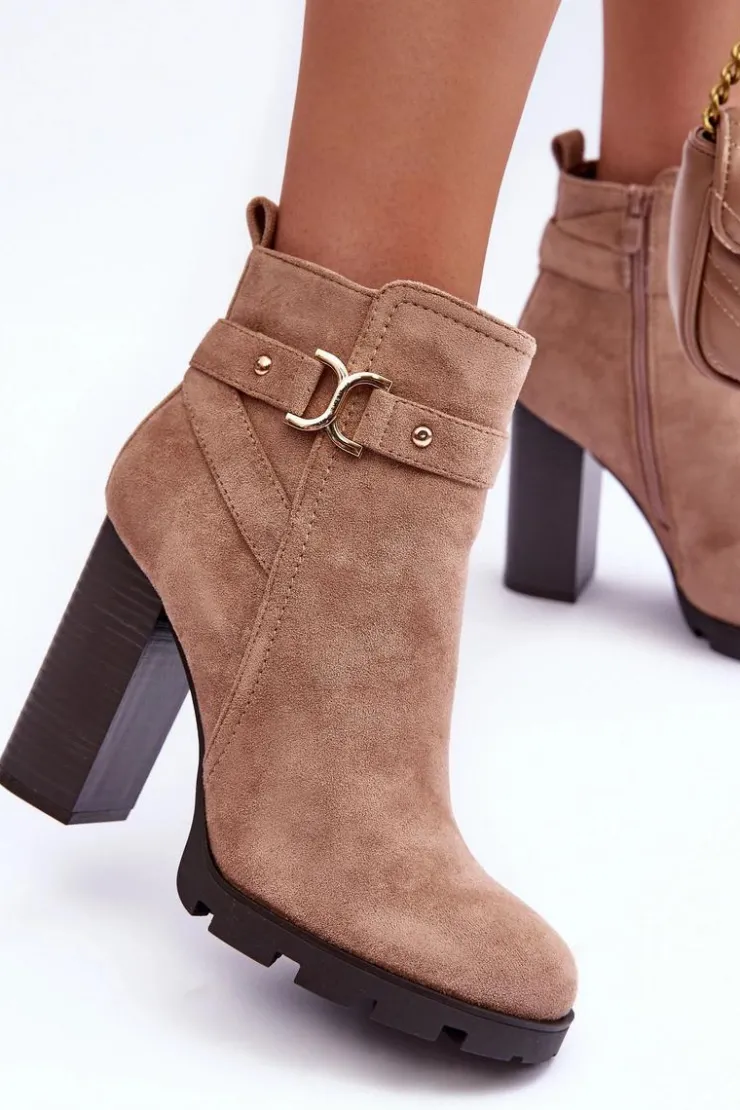 Botki na wysokim obcasie w postaci słupka. Wykonane z eko zamszu. Zapinane na suwak po wewnętrznej stronie cholewki. Zapiętek jest usztywniany. Model ten ocieplony został kocem obuwniczym. Koniecznie musisz je mieć! Przy wyborze rozmiaru prosimy sugerować się tabelą rozmiarów.