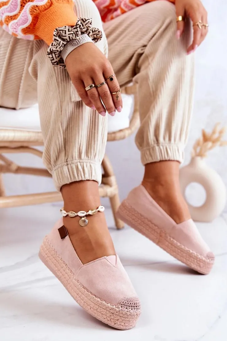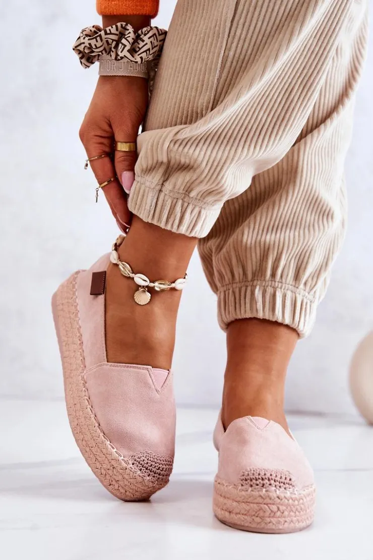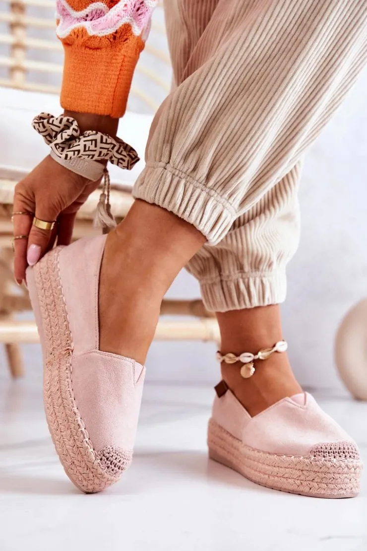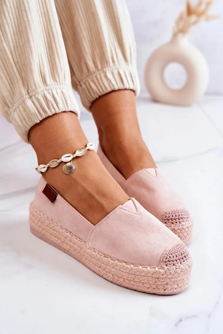 Rewelacyjne espadryle na wysokiej platformie! Wykonane z miłego w dotyku eko zamszu. Materiałowa wkładka z podpiętkiem wykonanym ze skóry ekologicznej. Pleciona podeszwa świetnie wygląda z letnimi stylizacjami! Koniecznie musisz je mieć! Sprawdzą się zarówno do pracy, jak i na spotkanie z przyjaciółmi czy wyjazd. Przy wyborze rozmiaru prosimy sugerować się tabelą rozmiarów.