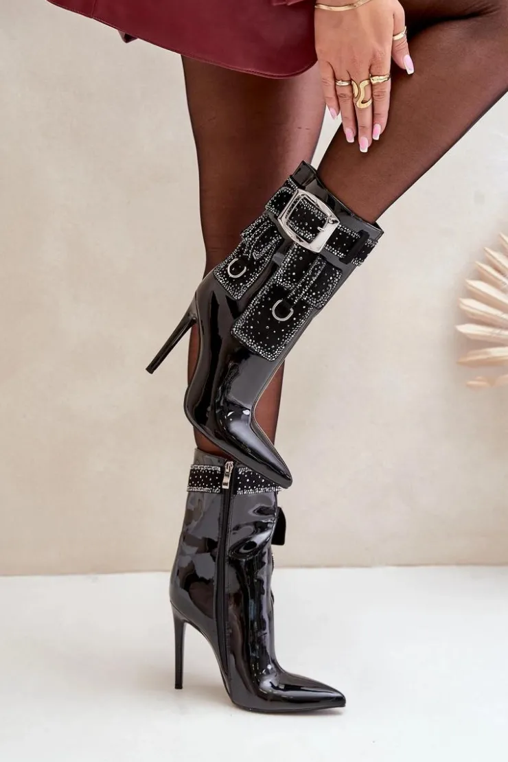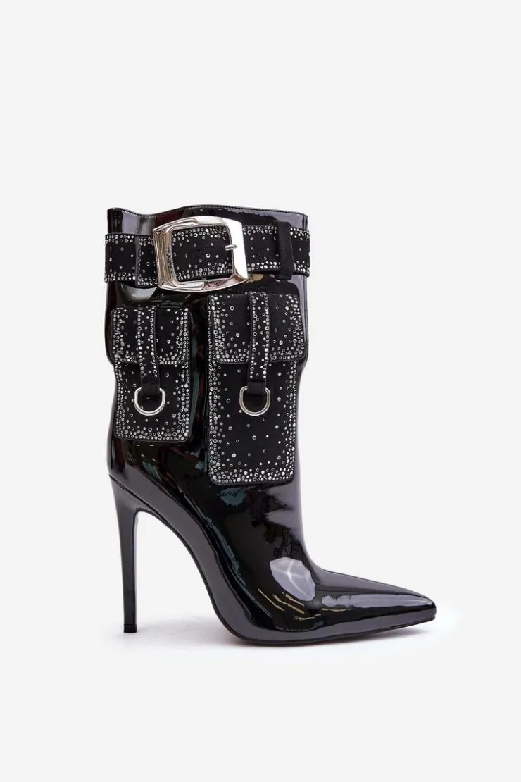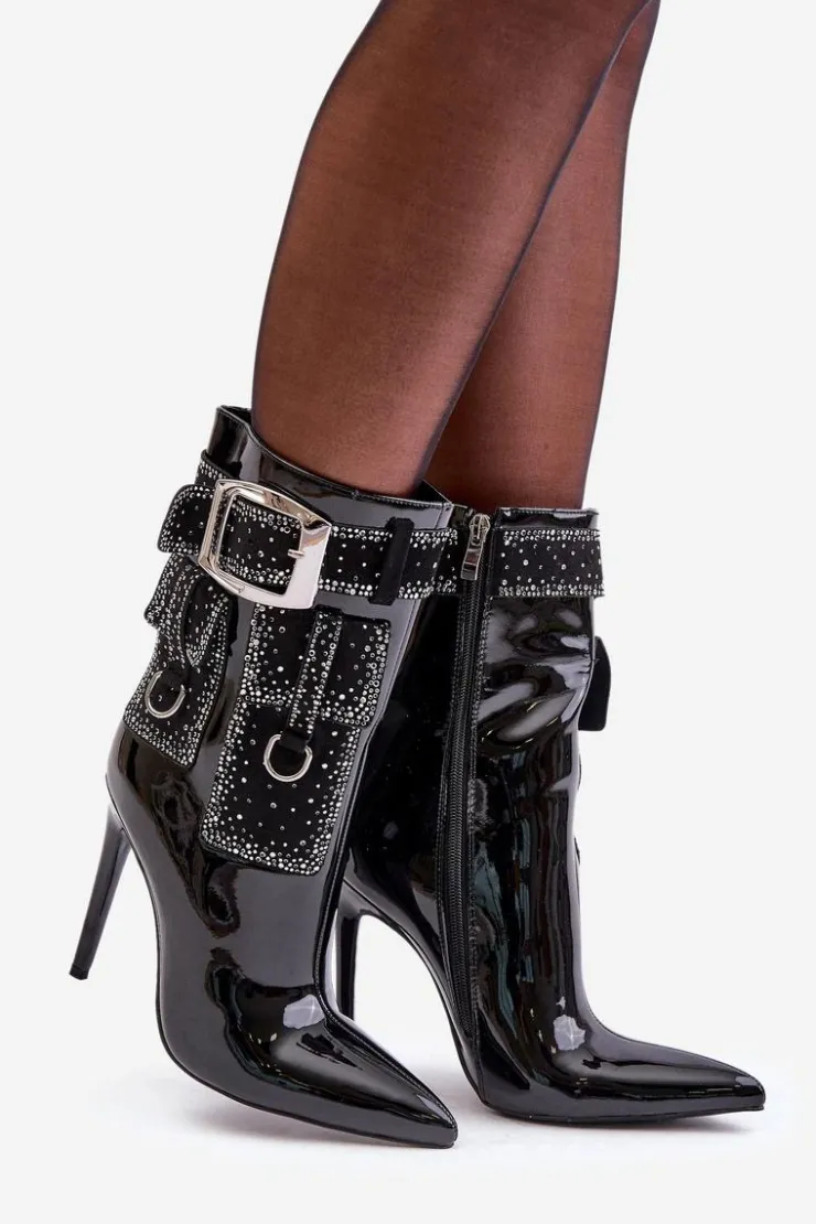 Online Boto Zdobione Botki Z Lakierowanej Eko Skóry Na Szpilce Czarne Senorith