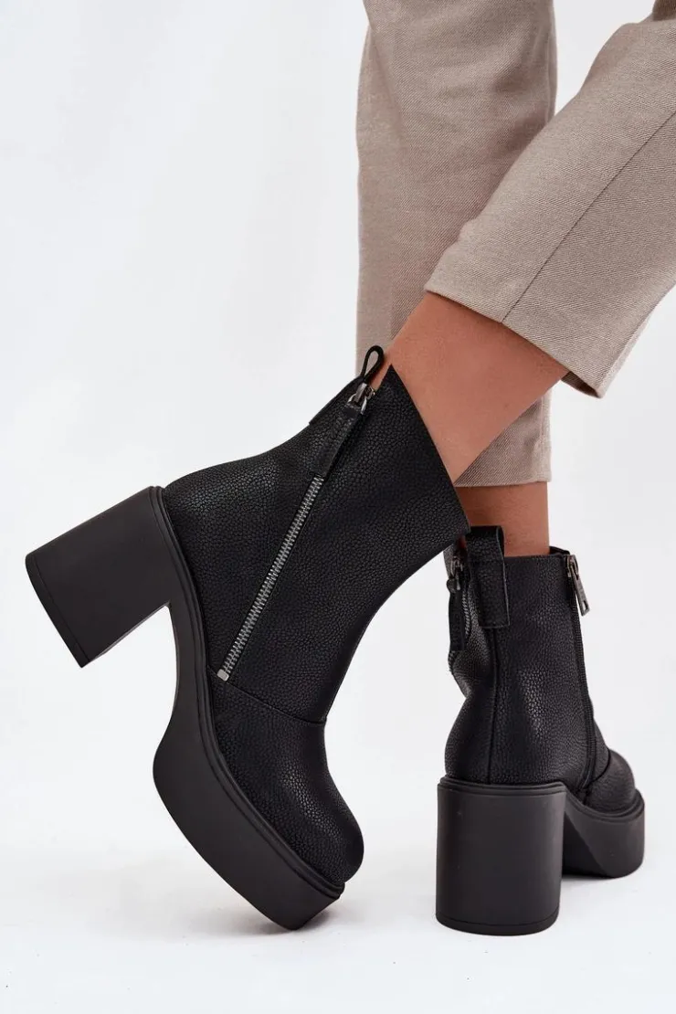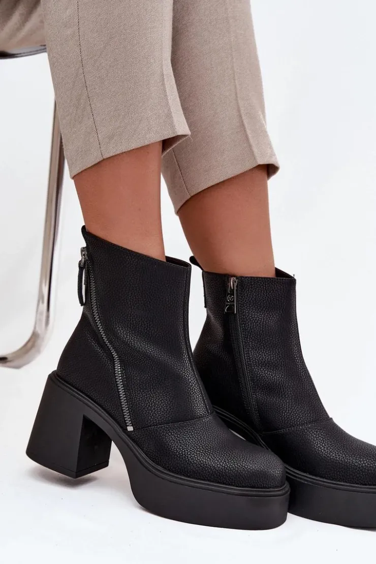 Botki damskie z naturalnej skóry od marki Vinceza to propozycja stworzona z myślą o kobietach, które poszukują elegancji w połączeniu z wygodą i funkcjonalnością. Wykonane ze skóry naturalnej, prezentują się niezwykle stylowo i ponadczasowo, podkreślając charakter każdej stylizacji. Model został osadzony na stabilnym obcasie w formie słupka z dodatkową platformą, co gwarantuje komfort noszenia, a jednocześnie subtelnie wydłuża sylwetkę i dodaje jej lekkości. Botki zapinane są na praktyczny zamek, który ułatwia ich zakładanie i zdejmowanie. Dodatkowo drugi, ozdobny zamek umieszczony z boku cholewki pełni rolę modnego detalu, nadając całości nowoczesnego i oryginalnego charakteru. Wnętrze butów zostało ocieplone miękkim, przyjemnym materiałem, dzięki czemu doskonale sprawdzają się w chłodniejsze dni, zapewniając komfort termiczny i wygodę użytkowania. To model, który świetnie odnajdzie się zarówno w casualowych stylizacjach, jak i bardziej eleganckich zestawach, stając się efektownym i praktycznym elementem damskiej garderoby. Przy wyborze rozmiaru prosimy sugerować się tabelą rozmiarów.