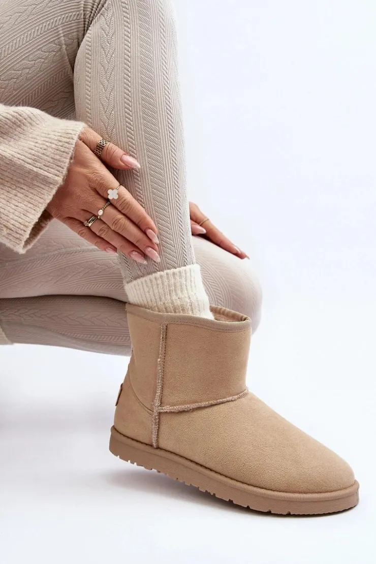 Śniegowce damskie wykonane z eko zamszu. Osadzone na trwałej podeszwie z gumowego tworzywa. Cholewka za kostkę. Ocieplenie futerkiem sprawiają, że są one idealnym wyborem na zimowe dni, chroniąc przed zimnem. Modny fason tego obuwia pozwala zestawić je z różnorodnymi stylizacjami. Koniecznie powinnaś je mieć! Przy wyborze rozmiaru prosimy sugerować się tabelą rozmiarów.
