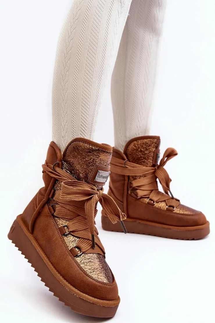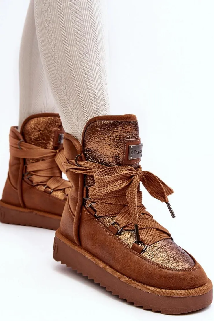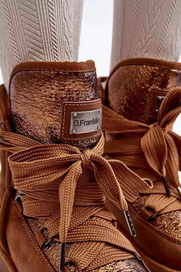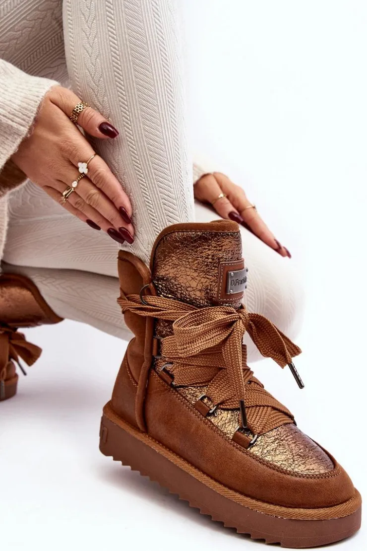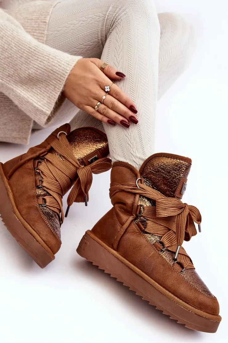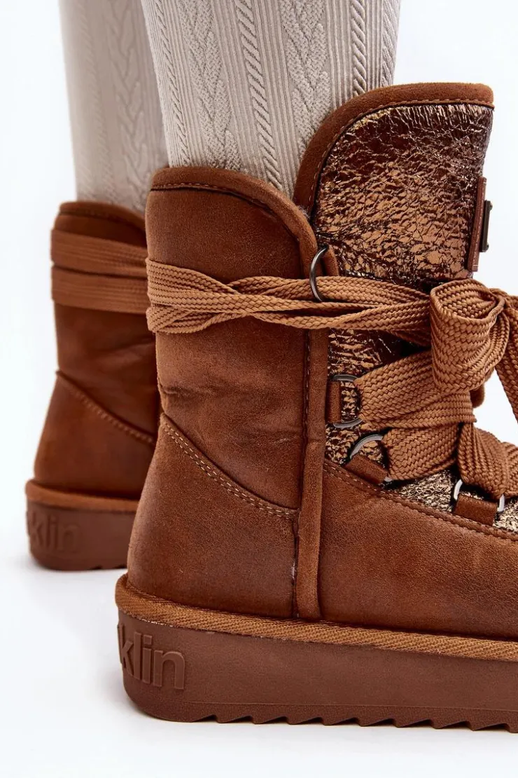 Śniegowce damskie wykonane z wysokiej jakości tkaniny z mikrofibry. Przód butów został ozdobiony połyskującym detalem, co nadaje im stylowego charakteru. Dodatkowym atutem jest fakt, że są wykonane z materiałów wegańskich. Środek ocieplony syntetycznym futerkiem. Model ten posiada grube sznurowadła. Modne i funkcjonalne obuwie, które z pewnością wyróżni się w Twojej kolekcji! Przy wyborze rozmiaru prosimy sugerować się tabelą rozmiarów.