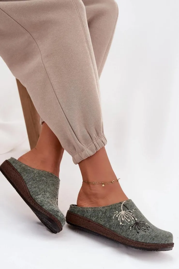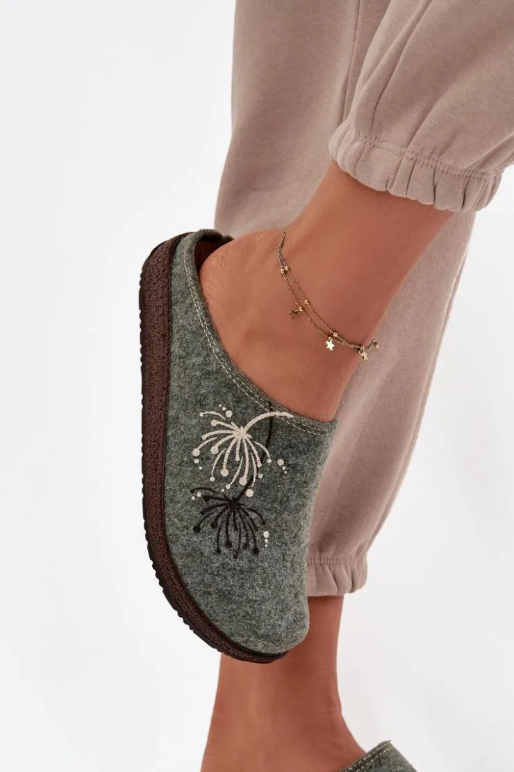 Damskie kapcie wykonane z filcowej tkaniny to lekka i wygodna propozycja do codziennego użytku w domu. Szerokie, zaokrąglone noski zapewniają swobodę ruchów i komfort dla palców, a profilowana filcowa wkładka dopasowuje się do kształtu stopy, wspierając jej naturalne ułożenie. Elastyczna podeszwa gwarantuje stabilność i miękkość przy każdym kroku. To praktyczne i wygodne kapcie, które łączą prostotę z funkcjonalnością, idealne dla kobiet ceniących komfort. Prosimy o skorzystanie z tabeli rozmiarów przy wyborze odpowiedniego rozmiaru.