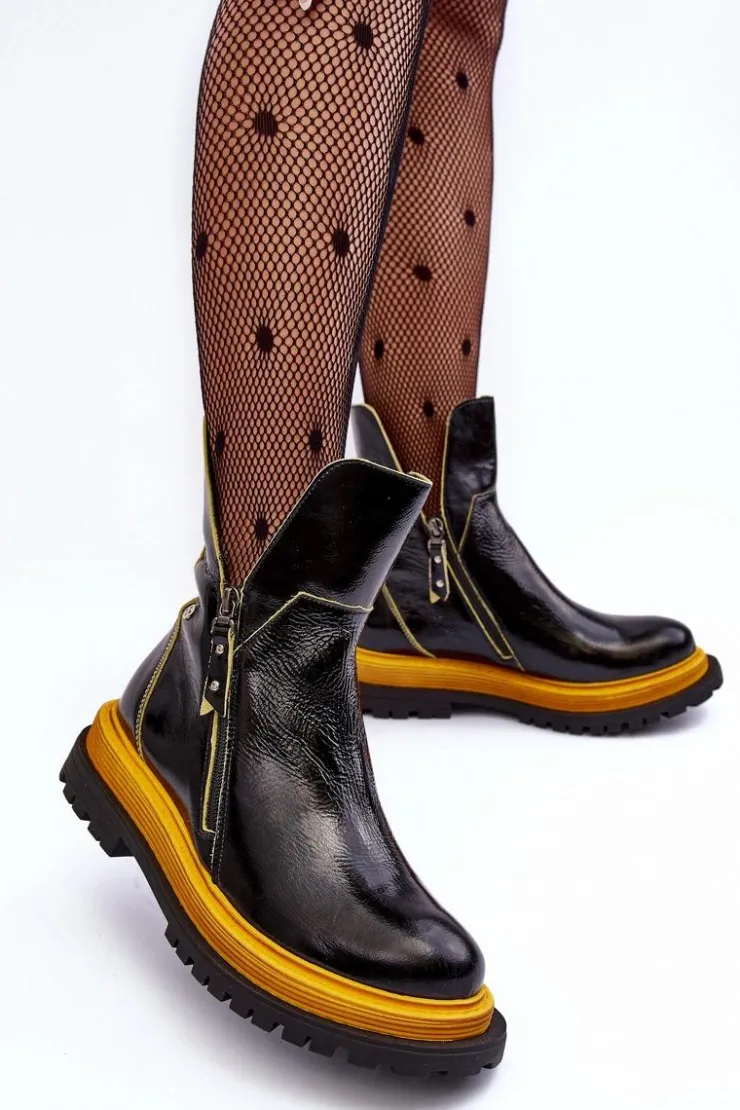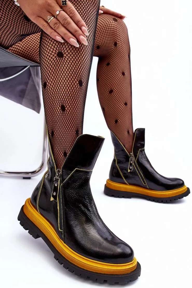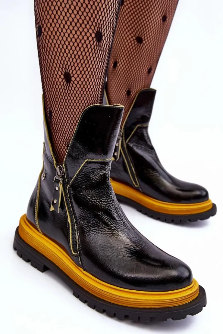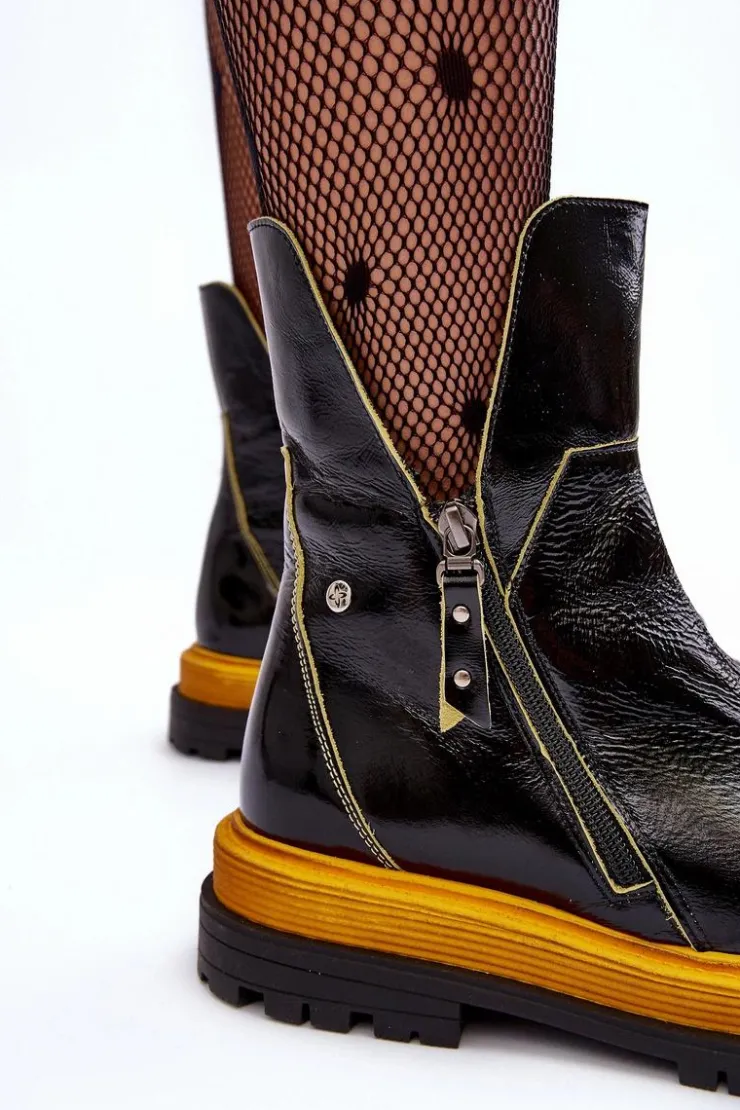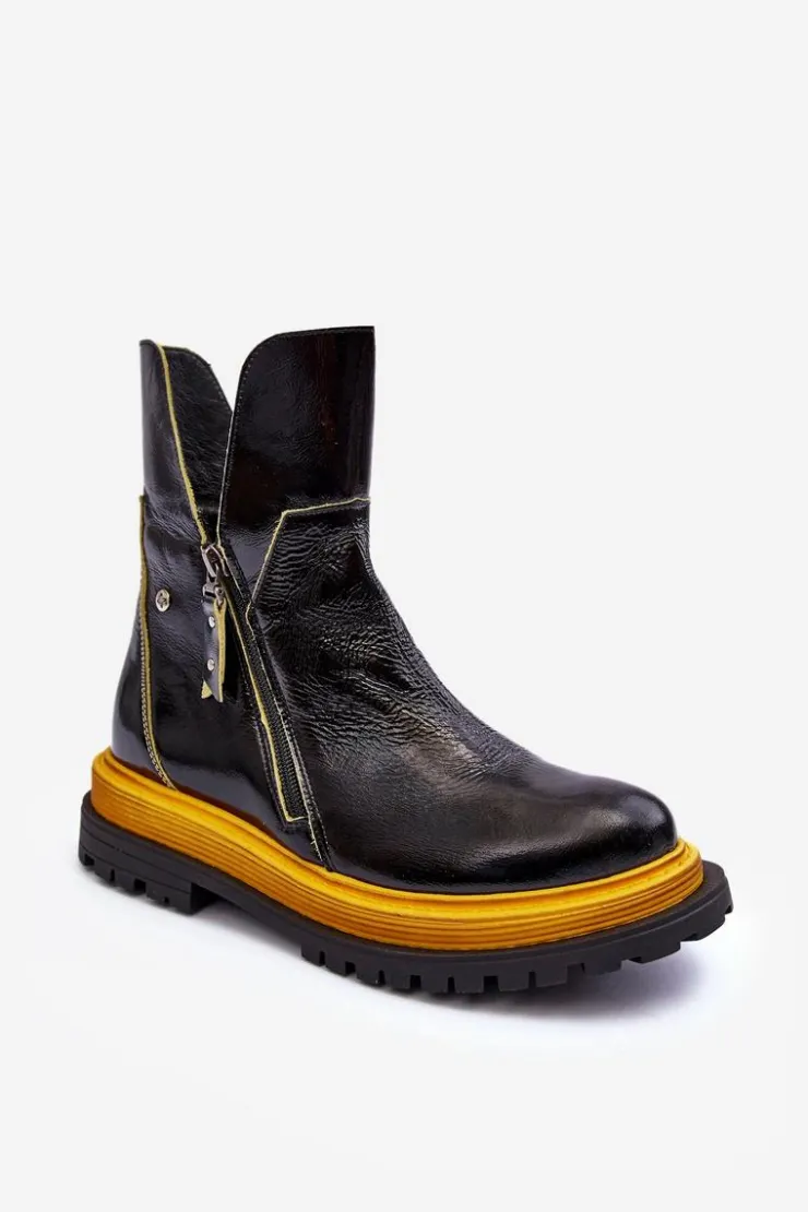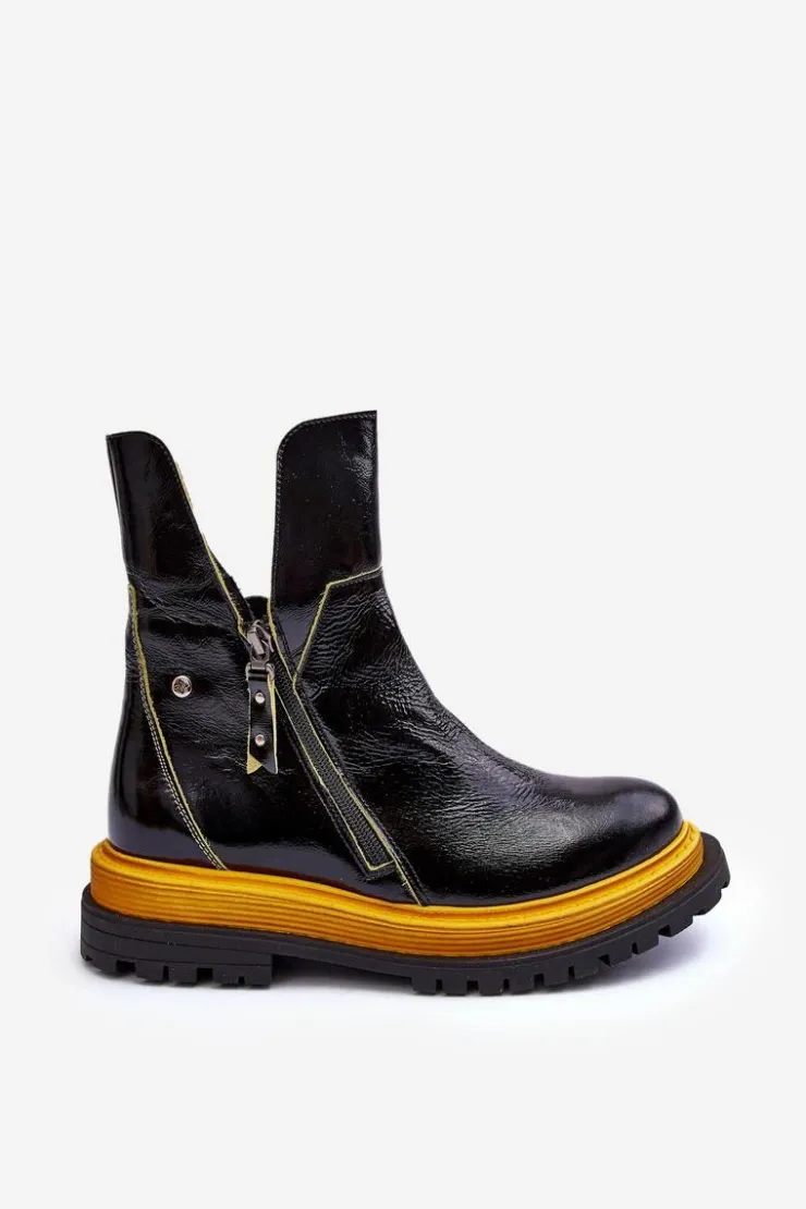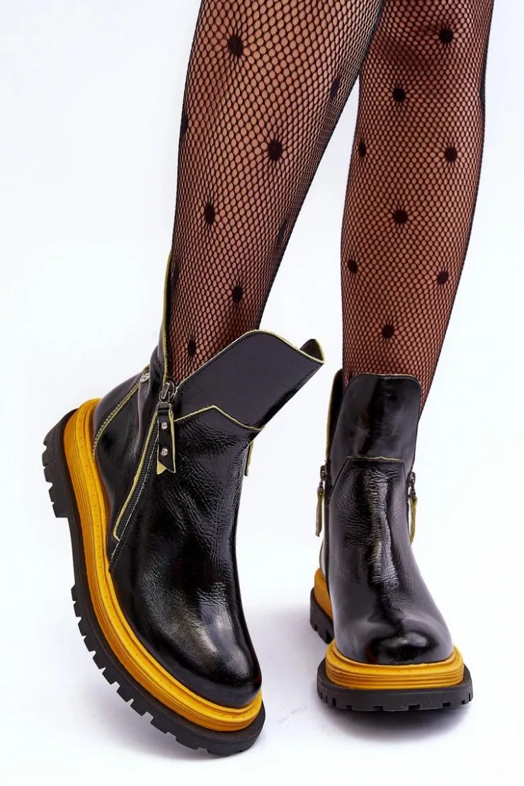 Online Maciejka Lakierowane Skórzane Botki Damskie 05747-07 Czarne
