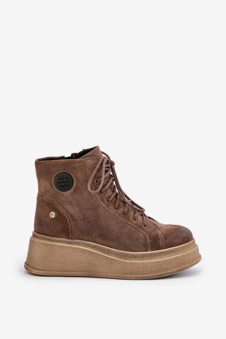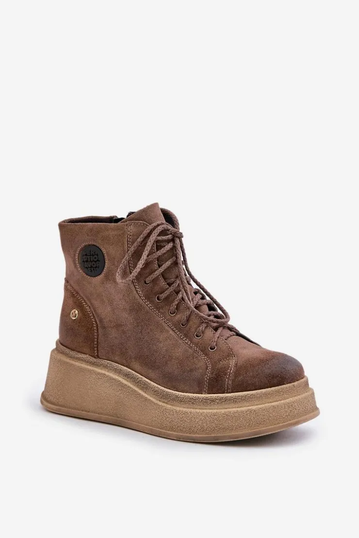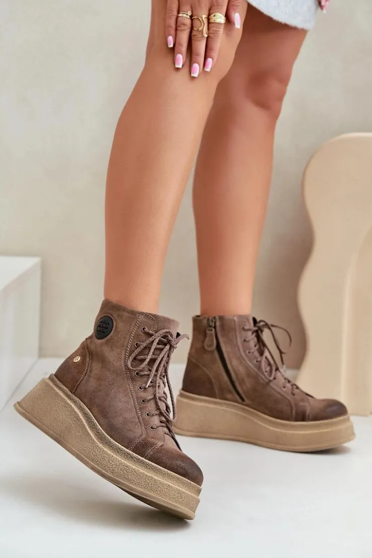 Botki damskie marki Maciejka wykonane są z najwyższej jakości skóry naturalnej. Osadzone na masywnej platformie oraz płaskim obcasie. Zapinane na suwak po wewnętrznej stronie cholewki i dodatkowo sznurowane. Miękka wkładka zapewni komfortowe użytkowanie obuwia. Zapiętek jest usztywniany. Przy wyborze rozmiaru prosimy sugerować się tabelą rozmiarów.