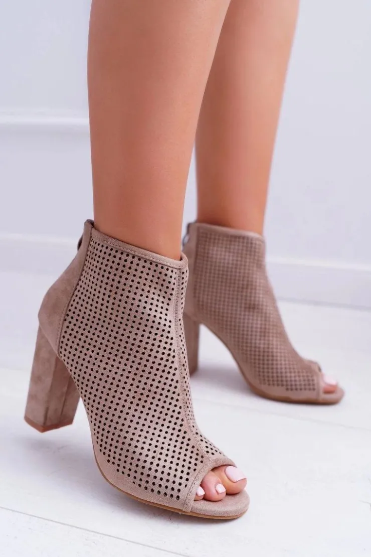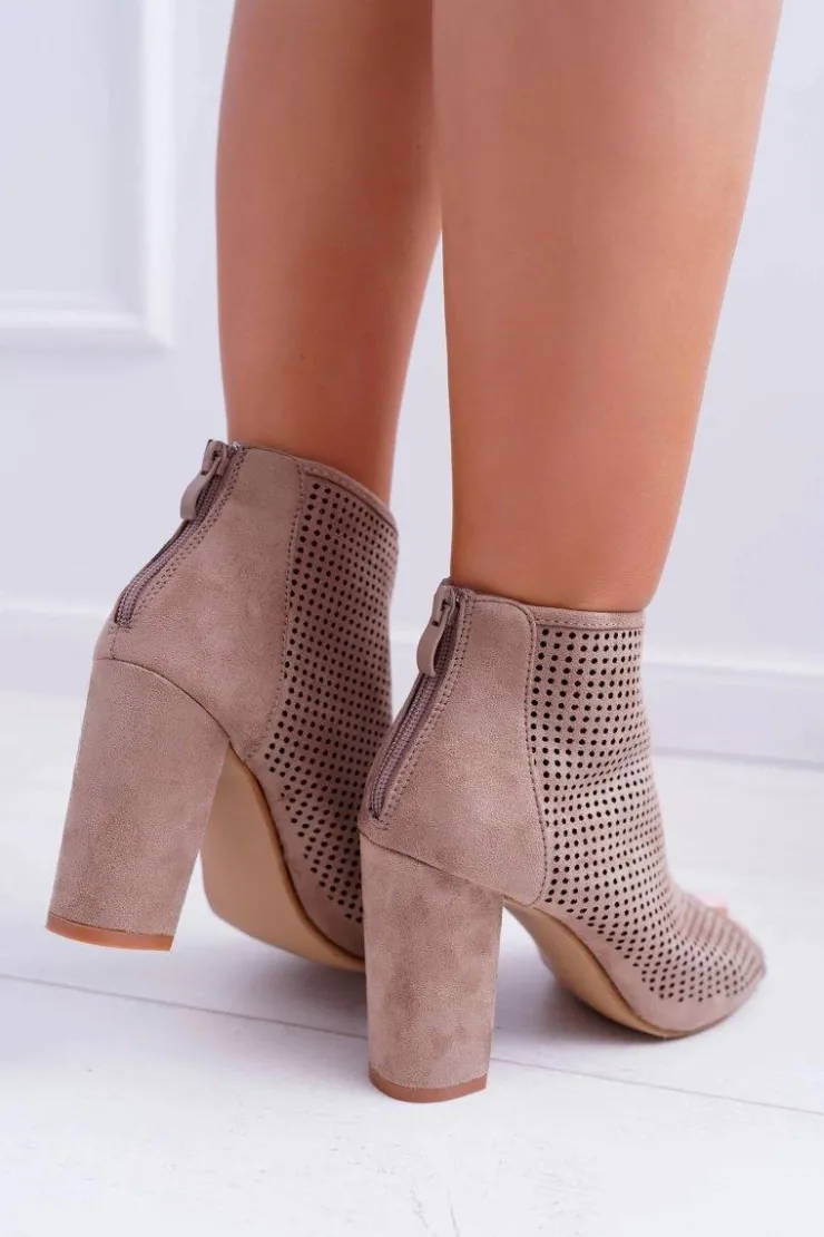 Outlet Boto Botki Damskie Na Słupku Zamszowe Khaki Jessin