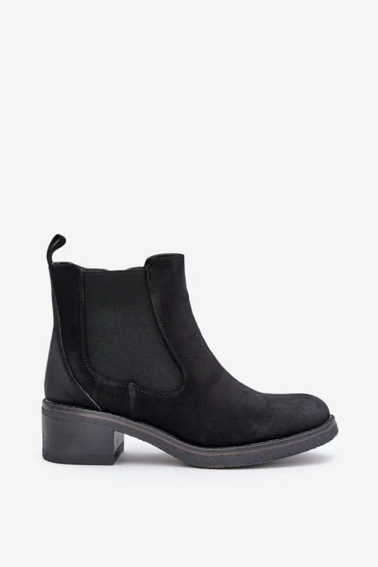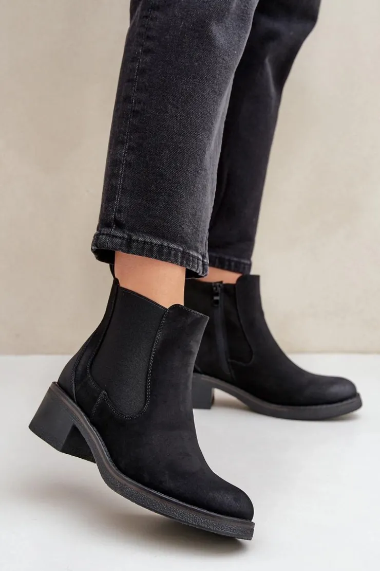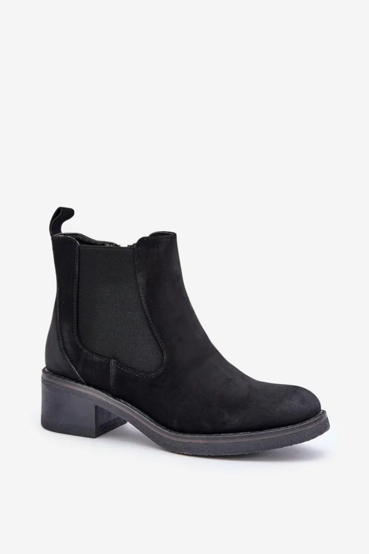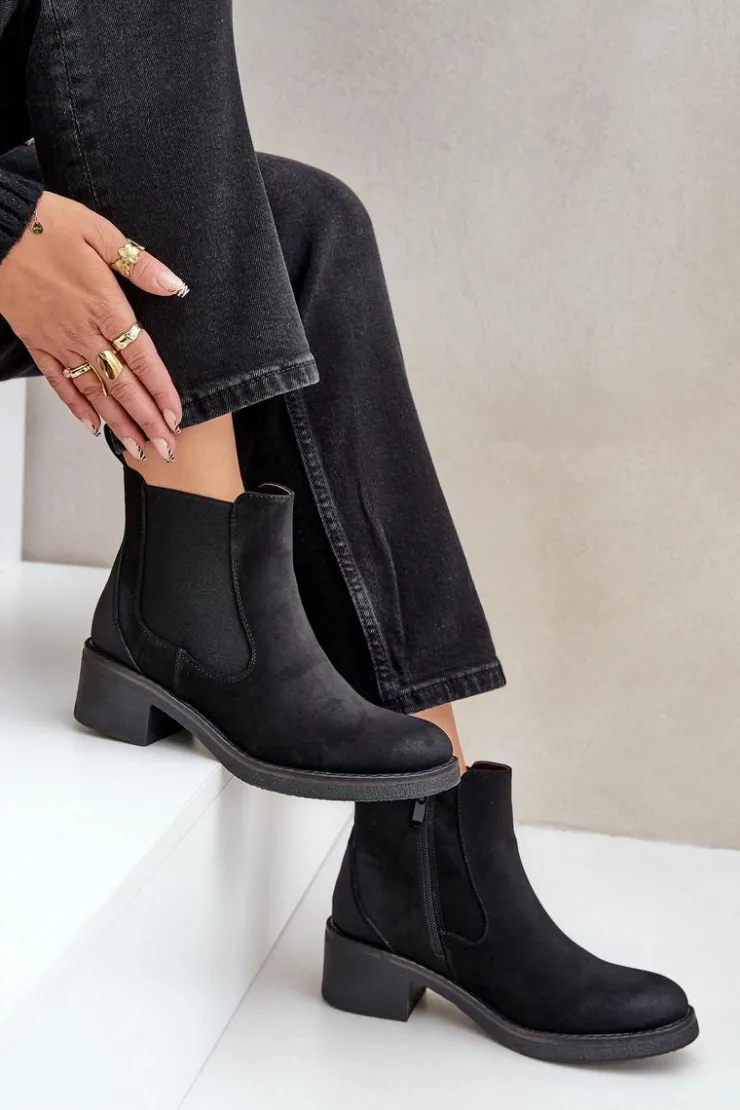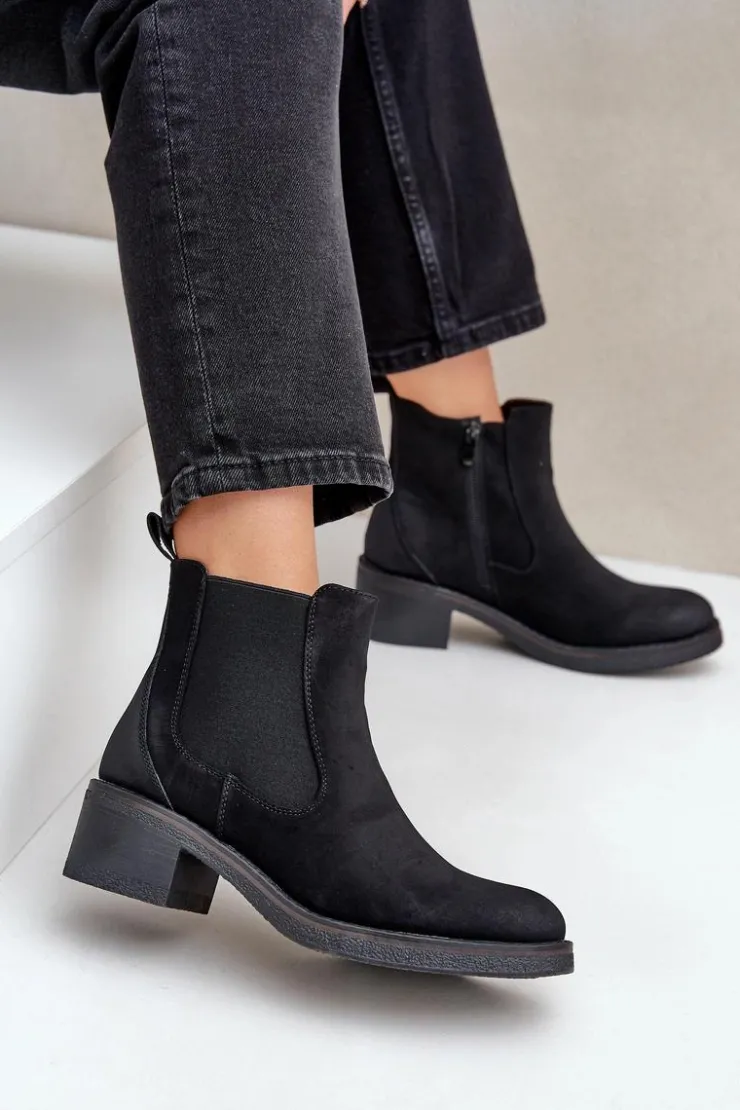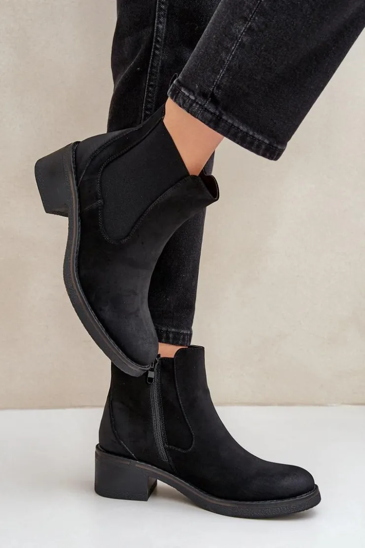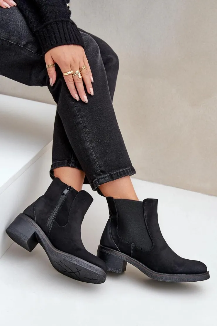 Outlet Boto Botki Damskie Sztyblety Ocieplane Niski Obcas Zamek Czarne Savalindra