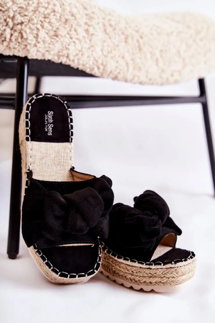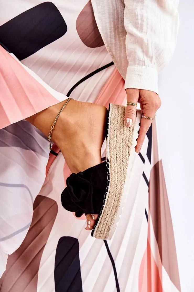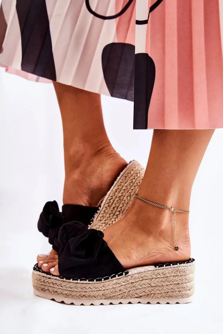 Wygodne klapki wykonane z wysokiej jakości eko zamszu. Wkładka wykonana z połączenia eko zamszu oraz tkaniny. Buty osadzone na platformie wraz z koturnem. Dodatkowo przyozdobione warkoczem z juty. Na przednim pasku znajduje się urocza kokarda. Podeszwa z tworzywa sztucznego. Model idealny na co dzień. Koniecznie powinnaś go mieć! Przy wyborze rozmiaru prosimy sugerować się tabelą rozmiarów.