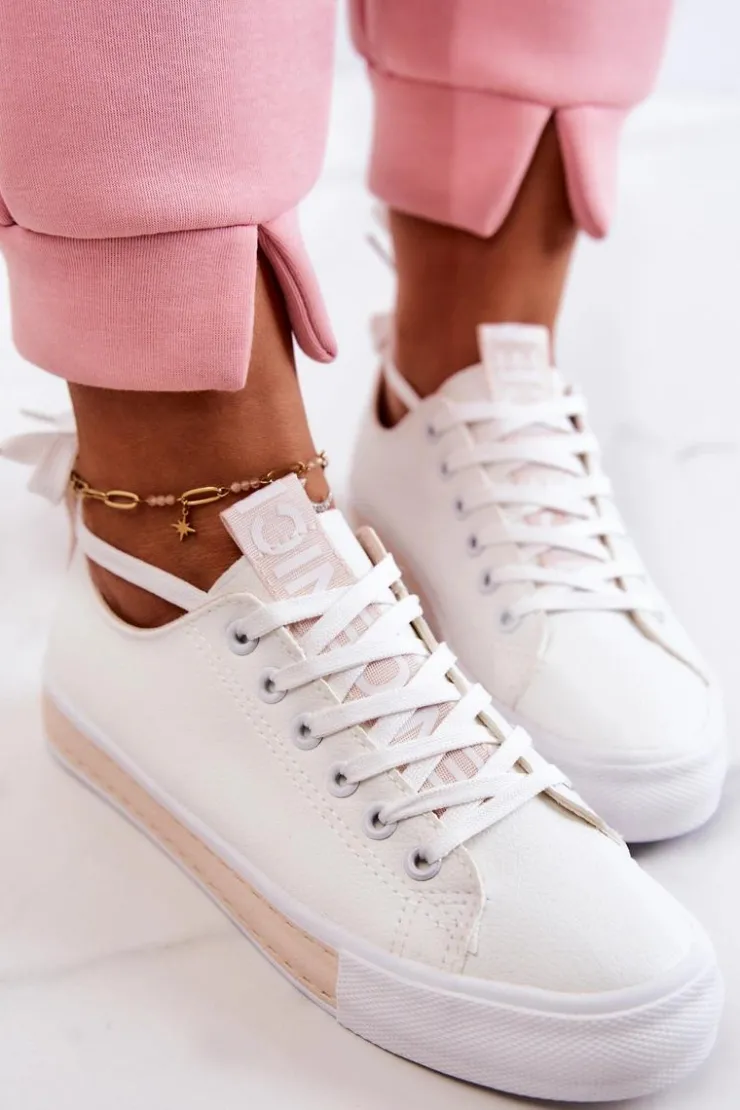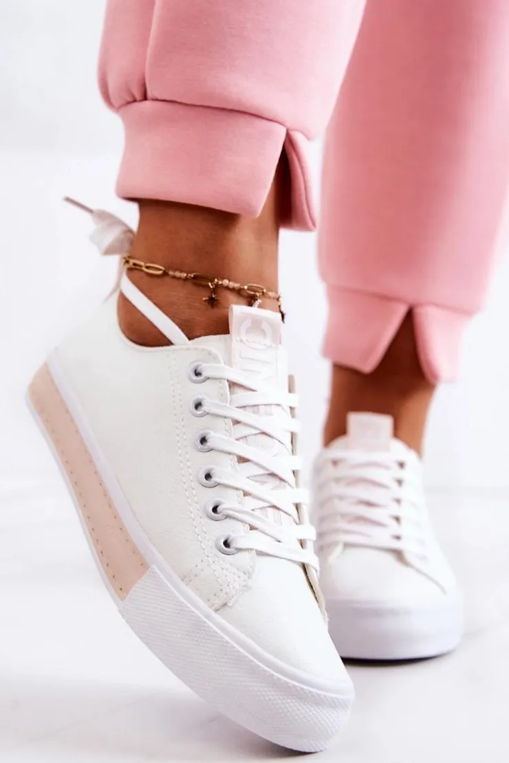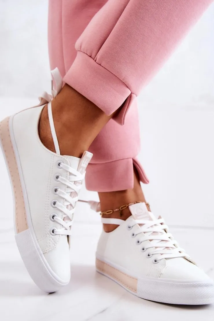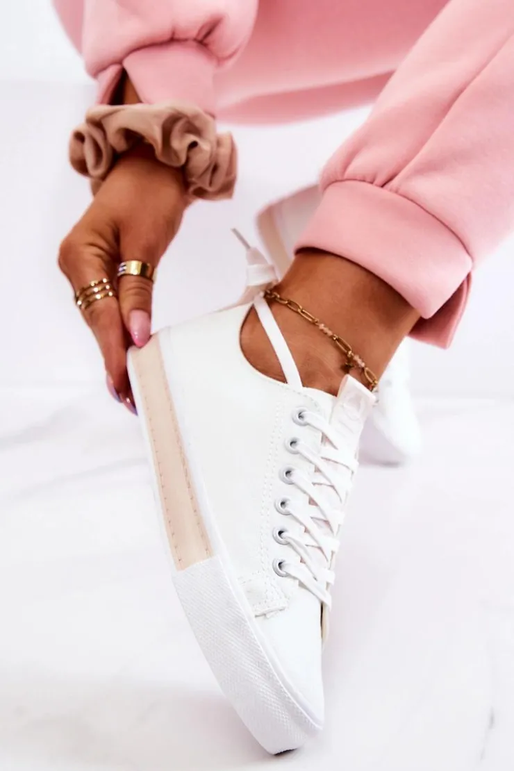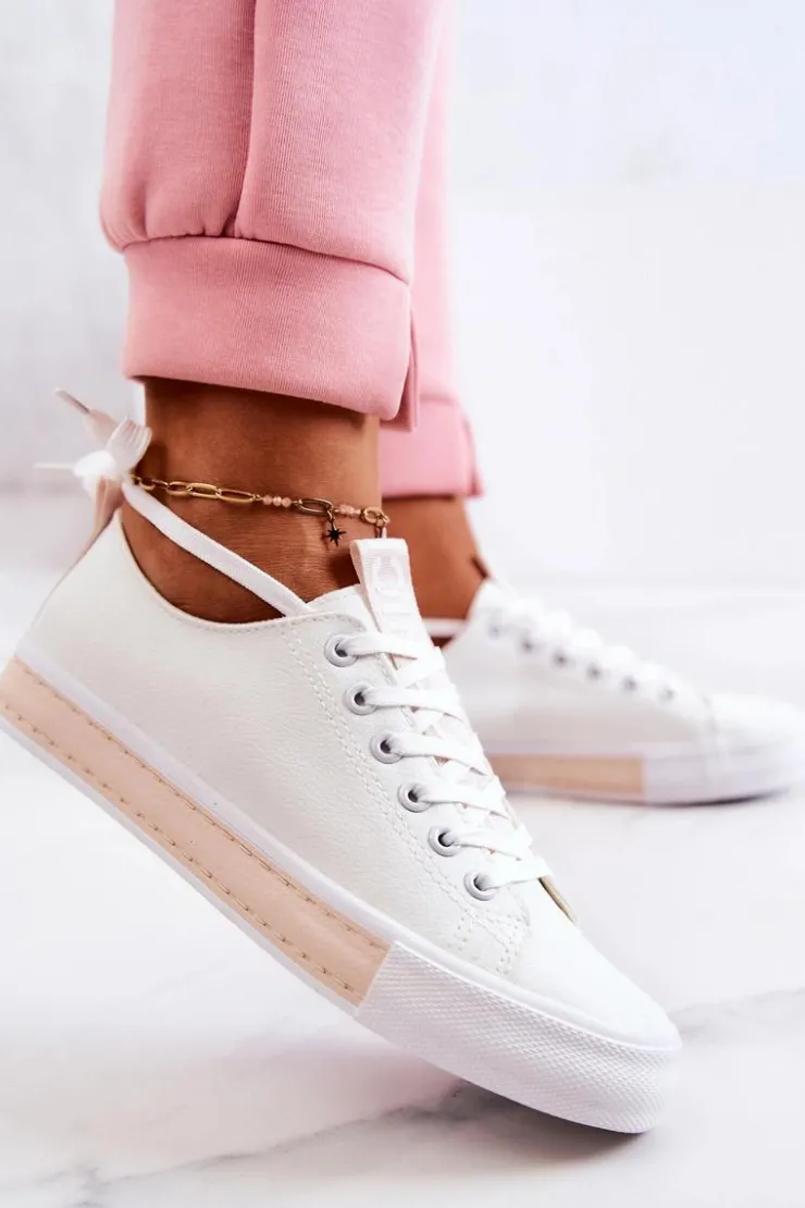 Outlet Boto Damskie Skórzane Tenisówki Biało-Beżowe Mikayla