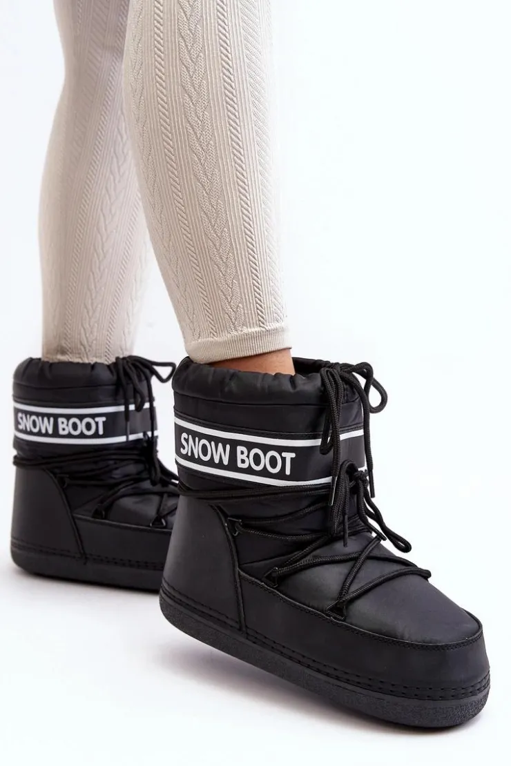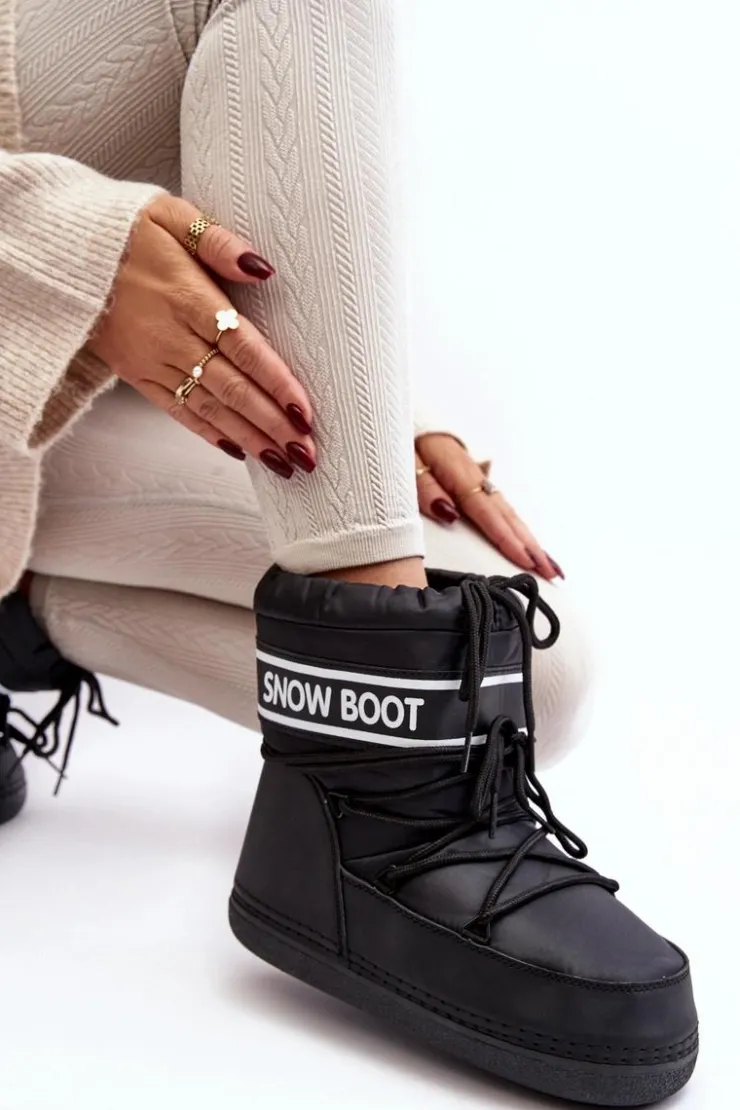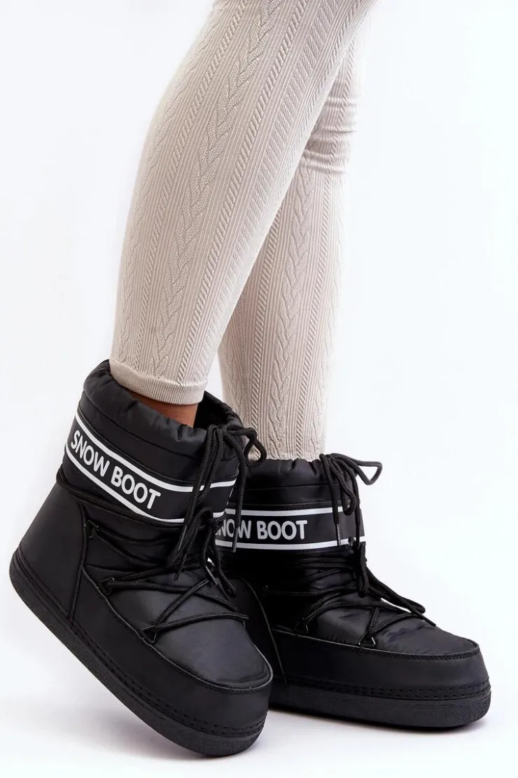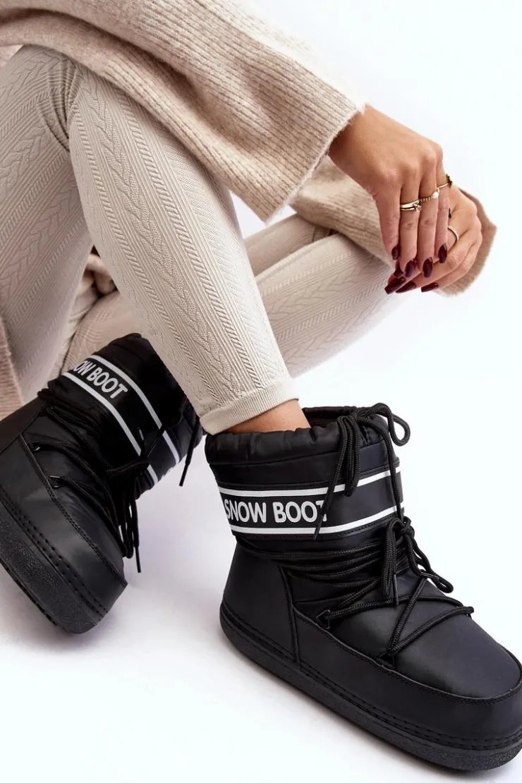 Outlet Boto Damskie Wiązane Śniegowce Czarne Soia Czarny