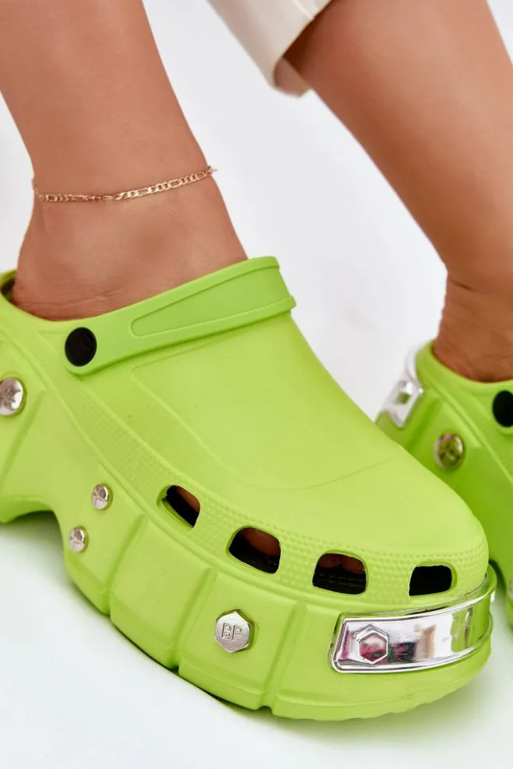 Klapki damskie wykonane z lekkiego, piankowego tworzywa to idealny wybór na lato. Wyróżniają się masywną platformą, która dodaje charakteru i nowoczesnego wyglądu. Dodatkowe zdobienie nadaje im modowego akcentu, sprawiając, że stanowią ciekawy element codziennych, wakacyjnych stylizacji. Świetne na plażę, basen czy miejskie spacery. Przy wyborze rozmiaru prosimy sugerować się tabelą rozmiarów.
