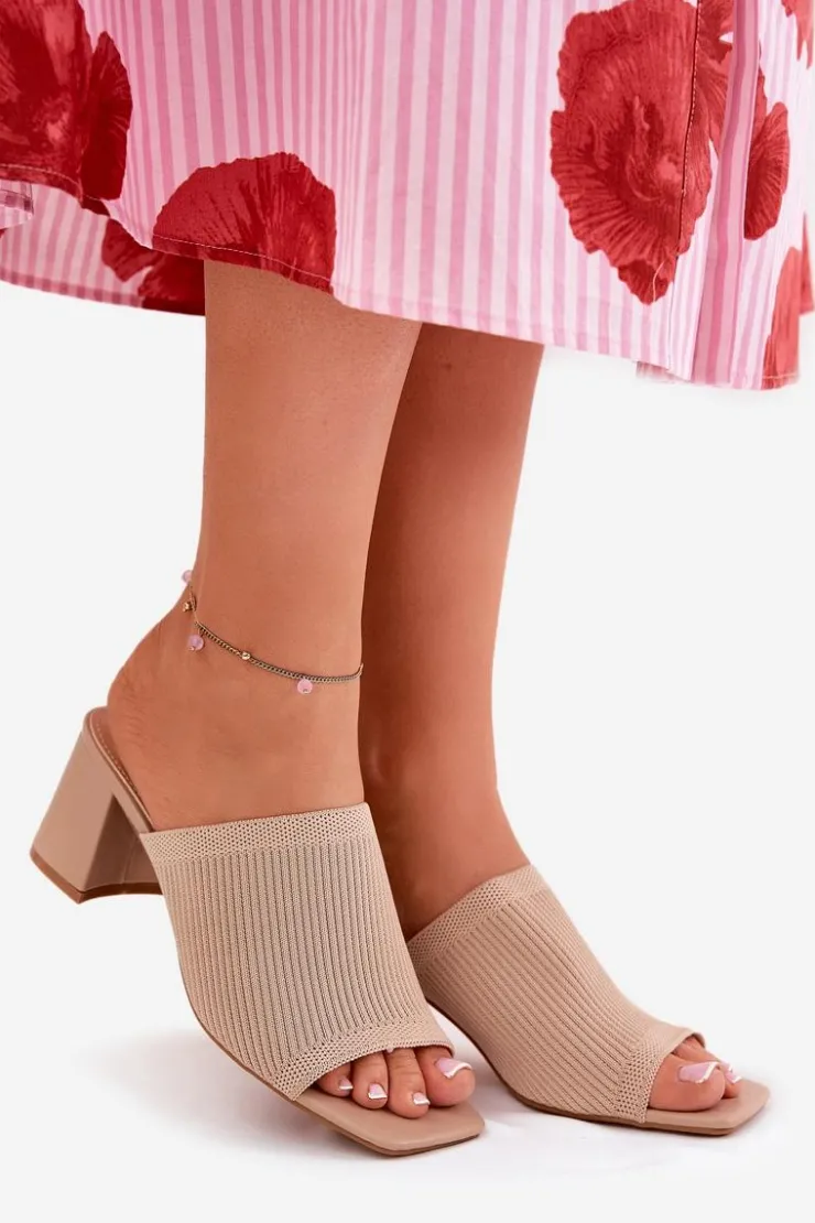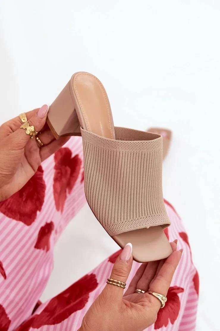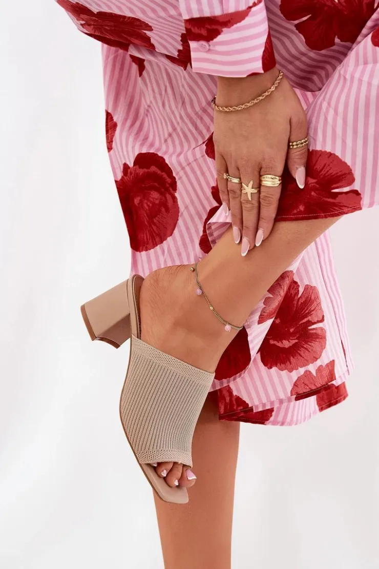 Klapki damskie wykonane z materiału tekstylnego. Osadzone na obcasie w formie słupka. Dzięki miękkiej wkładce będą idealnym wyborem na letnie spacery czy różne uroczystości. Modny wygląd sprawia, że świetnie komponują się z różnymi stylizacjami. Koniecznie powinnaś je mieć w swojej letniej szafie! Przy wyborze rozmiaru prosimy kierować się tabelą rozmiarów.