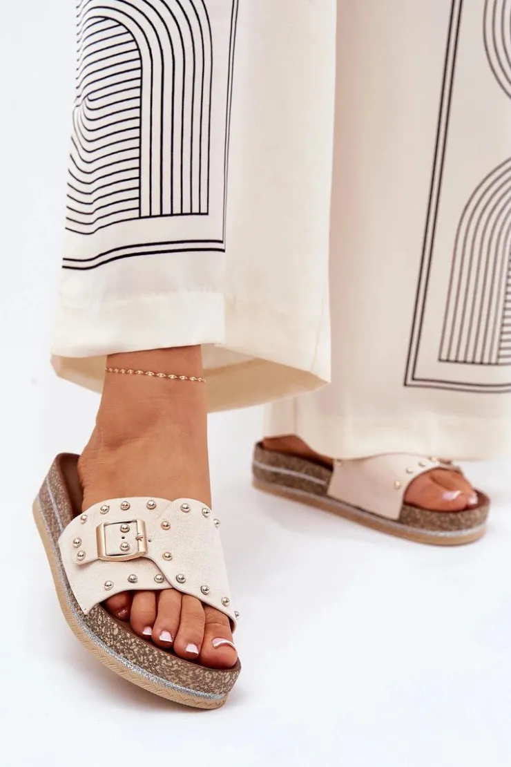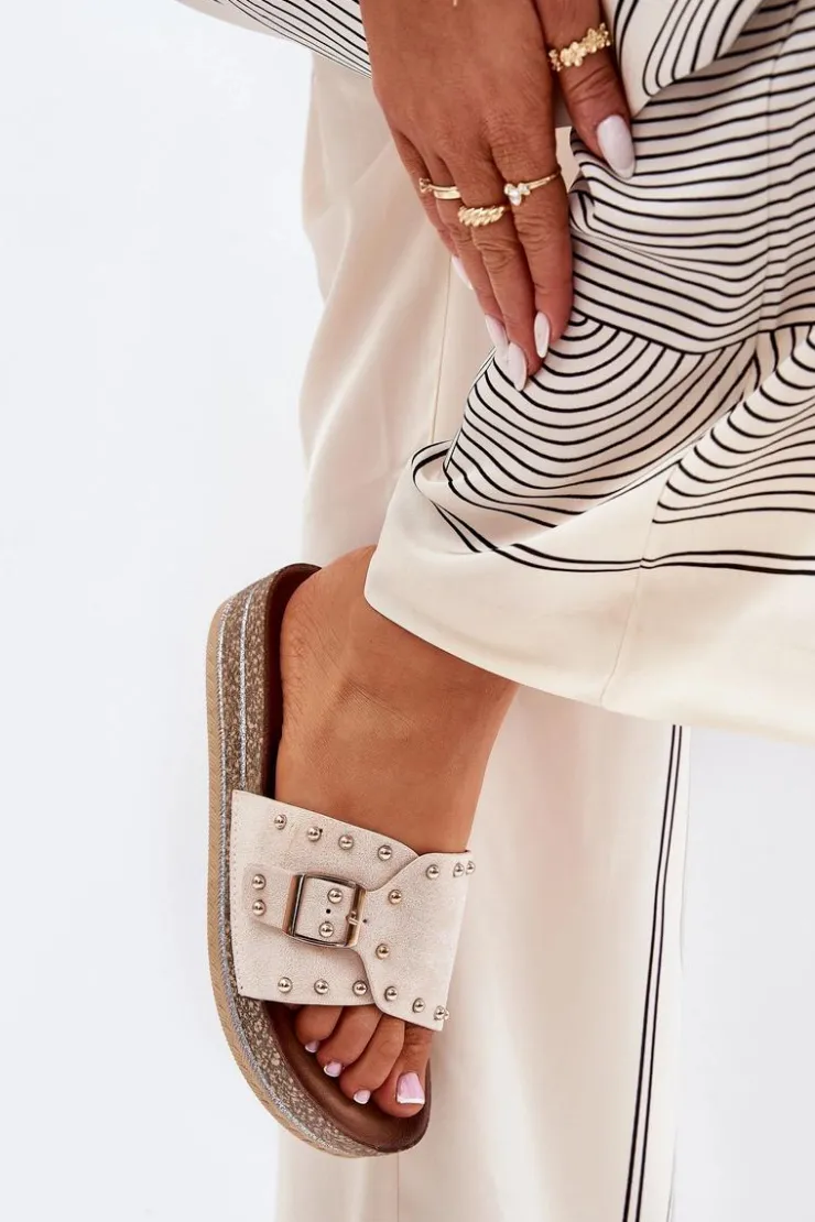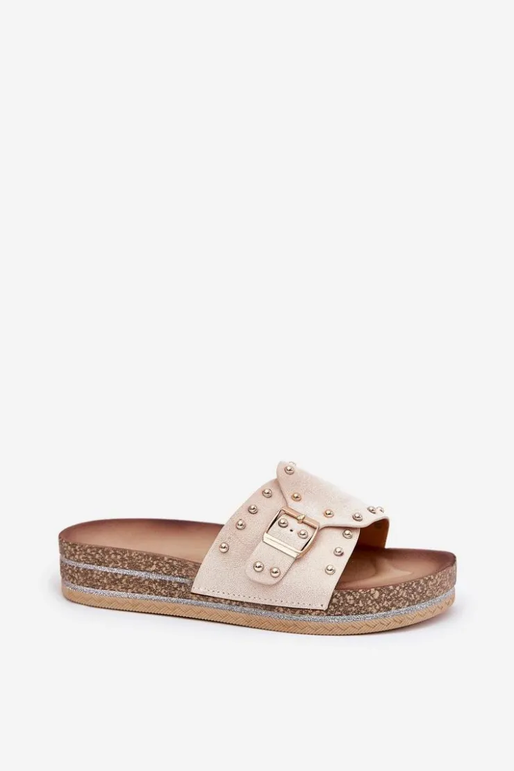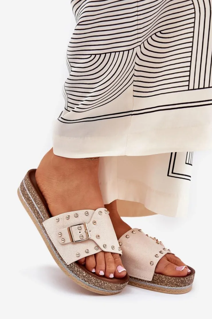 Stylowe klapki damskie z eko zamszu, ozdobione klamrą i ćwiekami, które nadają im nowoczesnego i odważnego charakteru. Osadzone na platformie z brokatem, które wprowadzają do każdej stylizacji subtelny blask. Doskonałe na letnie dni, te klapki łączą wygodę z modnym wyglądem, świetnie pasując do sukienek, spódnic i spodni. Przy wyborze rozmiaru rosimy sugerować się tabelą rozmiarów.
