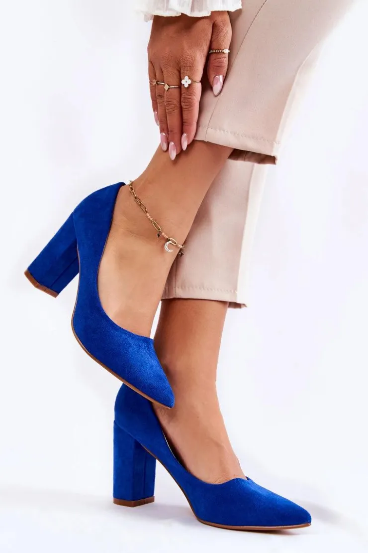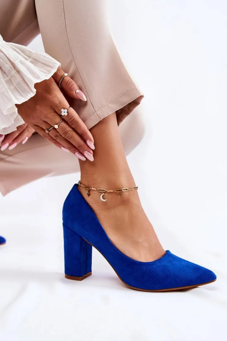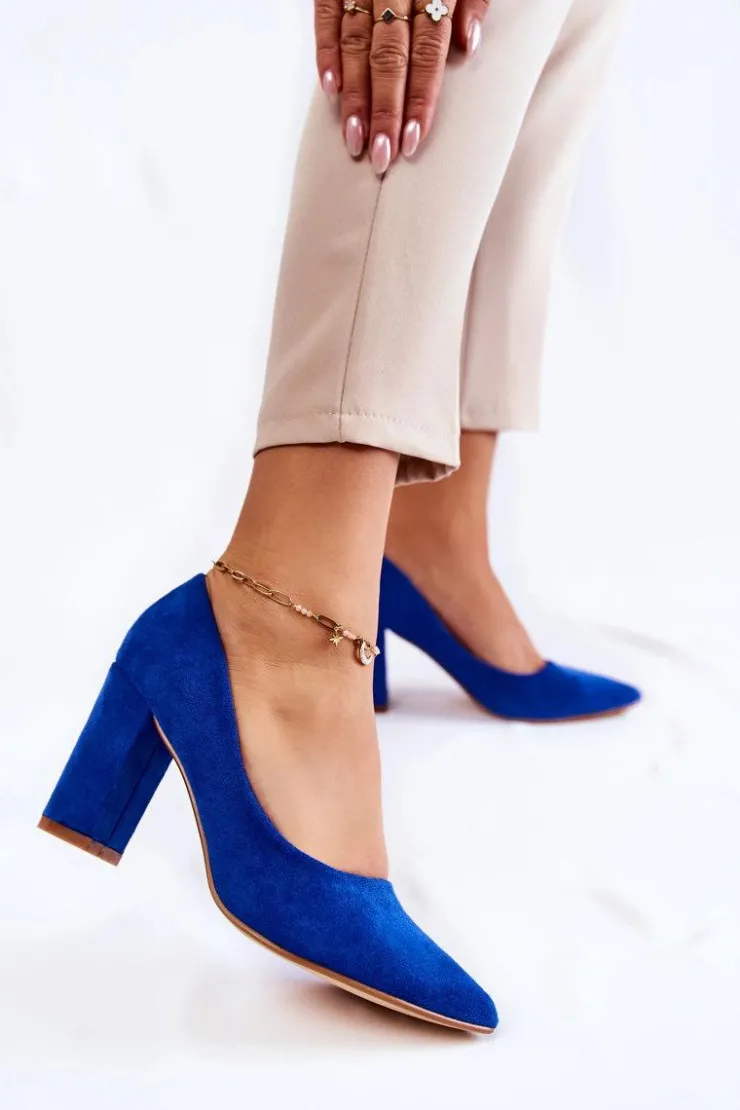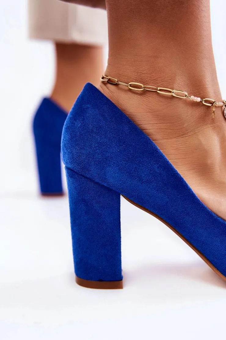 Outlet Boto Klasyczne Zamszowe Czółenka Na Słupku Niebieskie Kendra