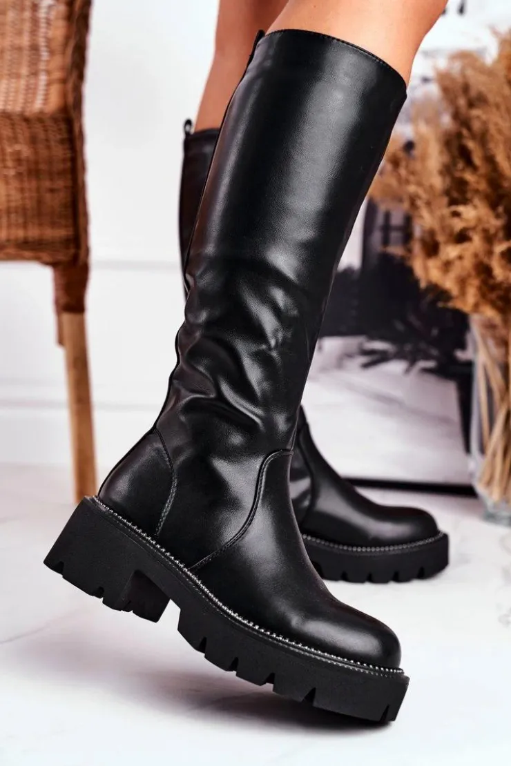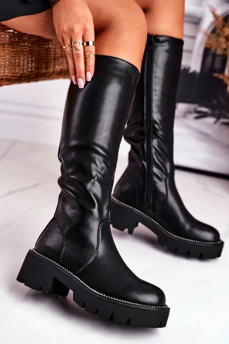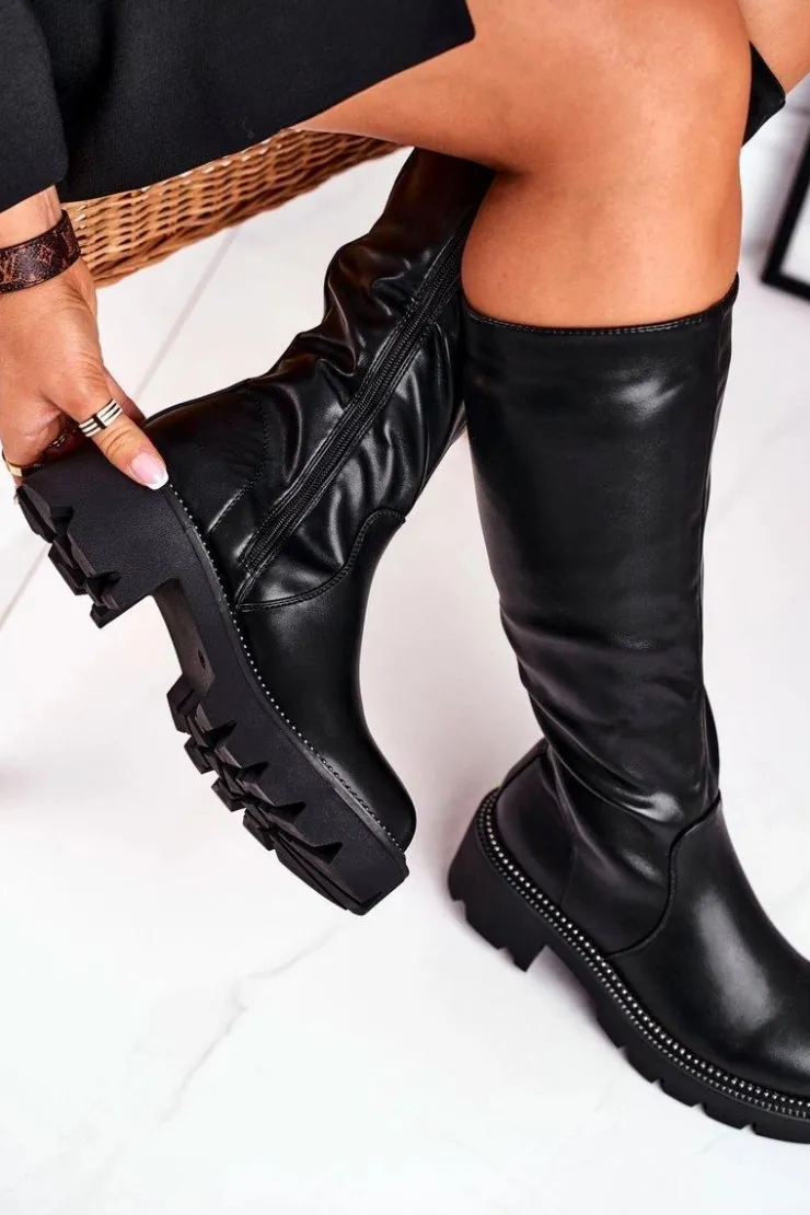 Outlet Boto Kozaki Damskie Ciepłe Czarne Ambicious