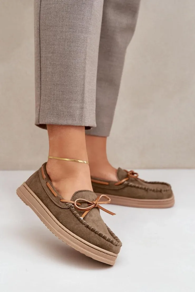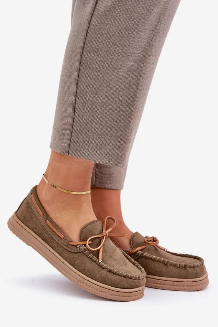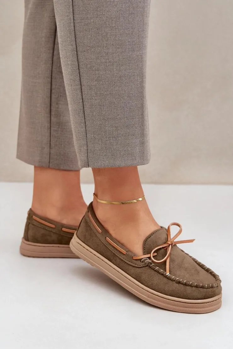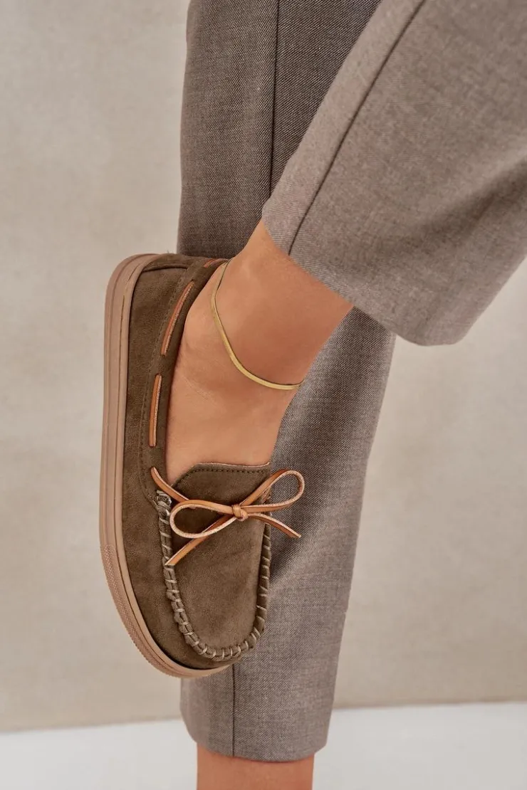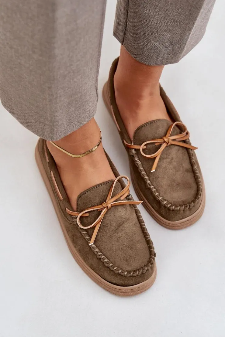 Mokasyny damskie z eko zamszu to klasyczna i wygodna propozycja na co dzień. Osadzone na płaskiej podeszwie, zapewniają komfort noszenia przez cały dzień. Z przodu ozdobione subtelną kokardką, która nadaje im uroku i kobiecego charakteru. Model ten to idealny wybór dla kobiet, które cenią wygodę połączoną z delikatnym akcentem mody. Podczas wyboru rozmiaru prosimy sugerować się tabelą rozmiarów.