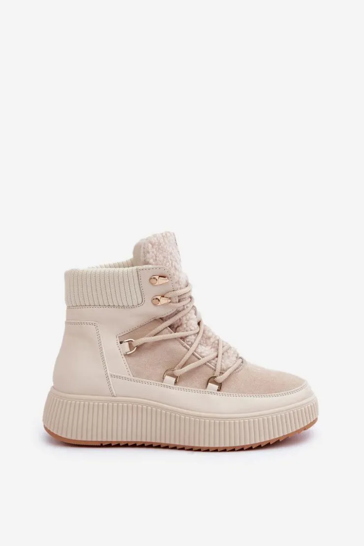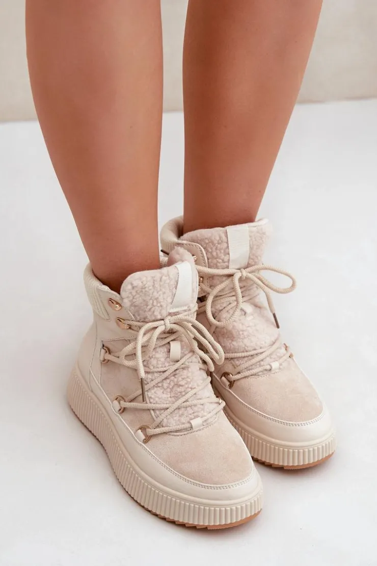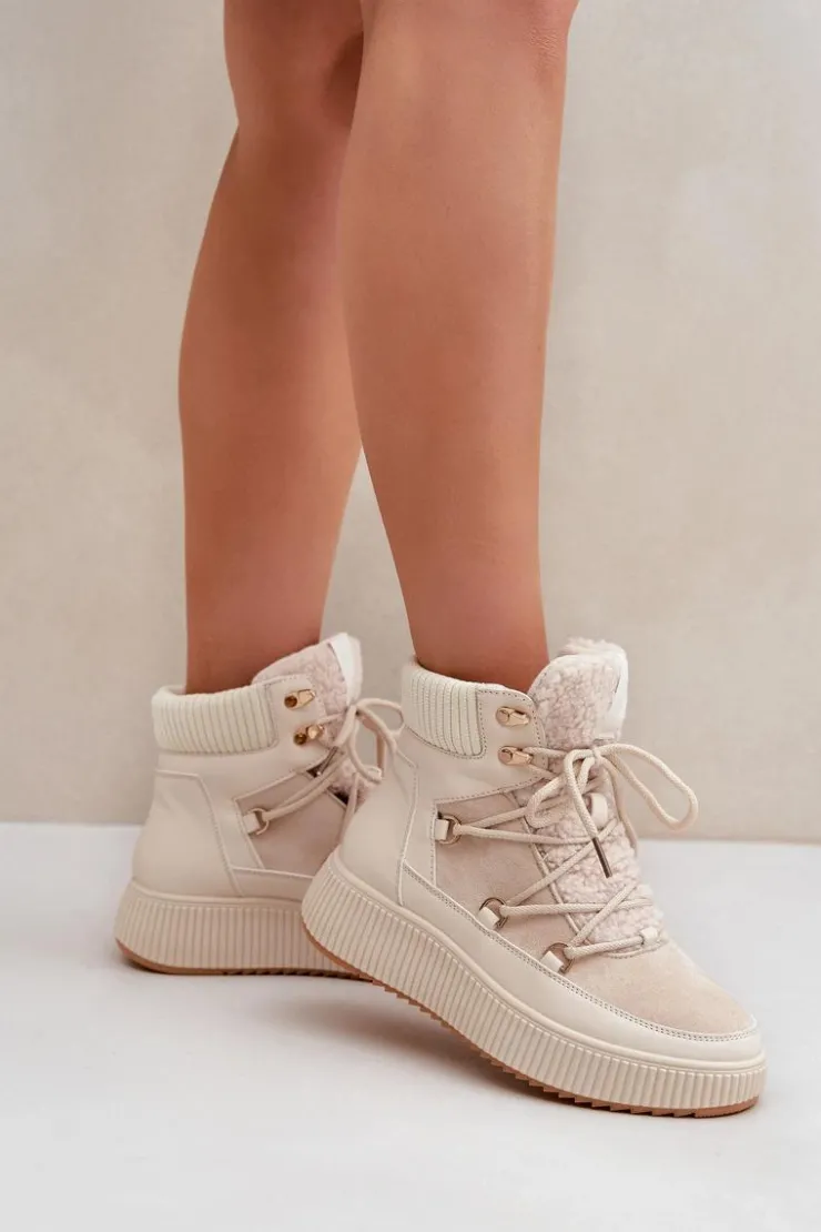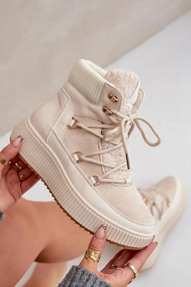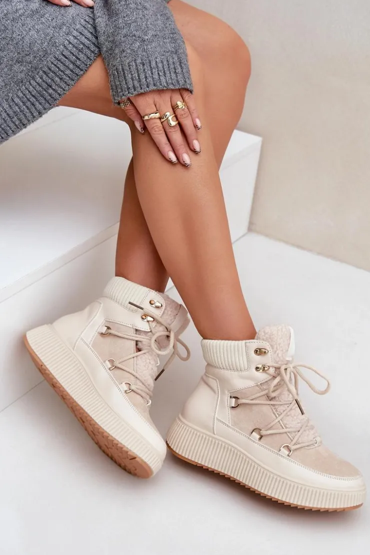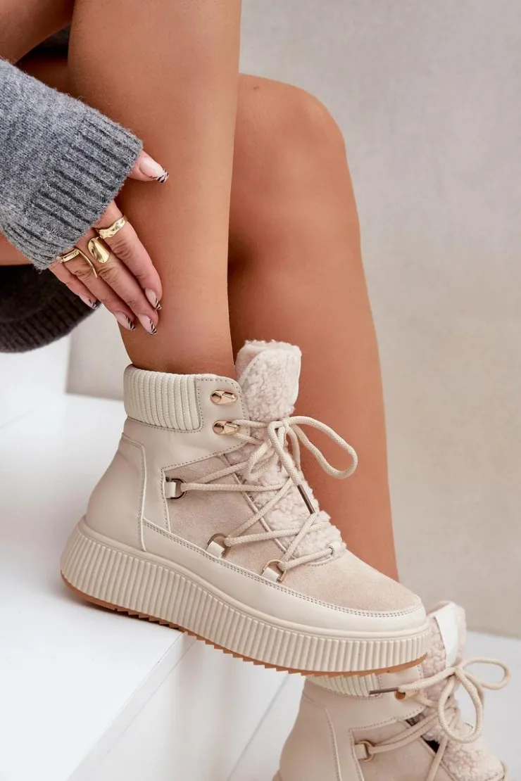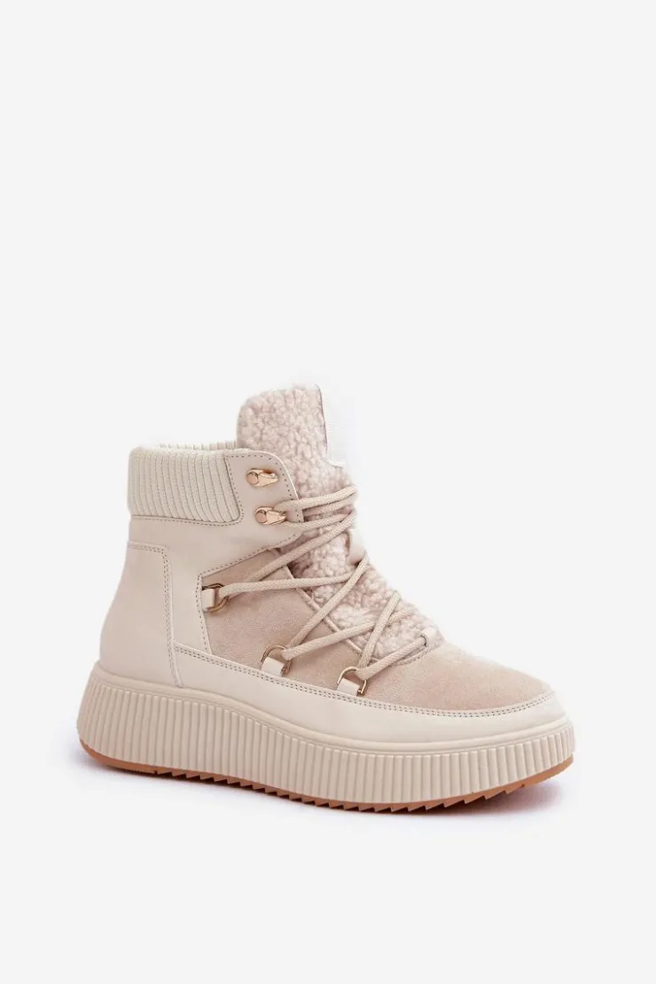 Niskie śniegowce na platformie to idealne obuwie na zimowe dni. Model wyróżnia się językiem ozdobionym miękkim futerkiem typu baranek, które nadaje mu przytulny i stylowy wygląd. Środek ocieplany kocem obuwniczym. Sznurowanie z dodatkowymi haczykami pozwala na precyzyjne dopasowanie butów do stopy. Funkcjonalne, modne i komfortowe – doskonałe na zimowe spacery i codzienne stylizacje. Przy wyborze rozmiaru prosimy sugerować się tabelą rozmiarów.