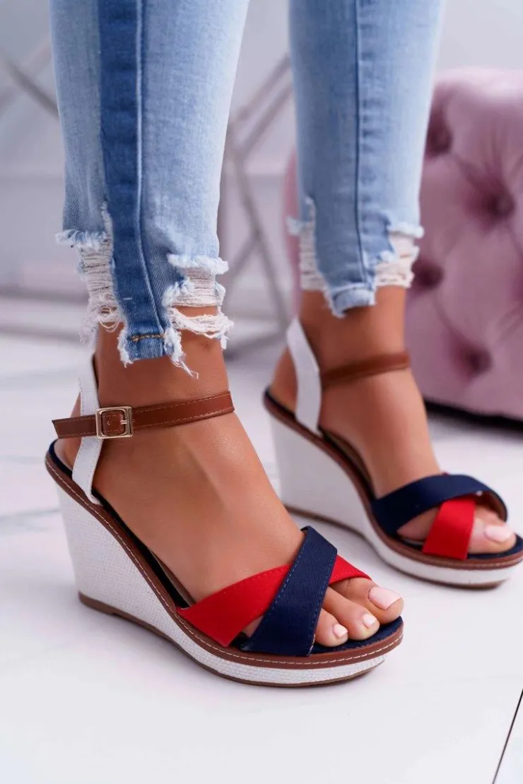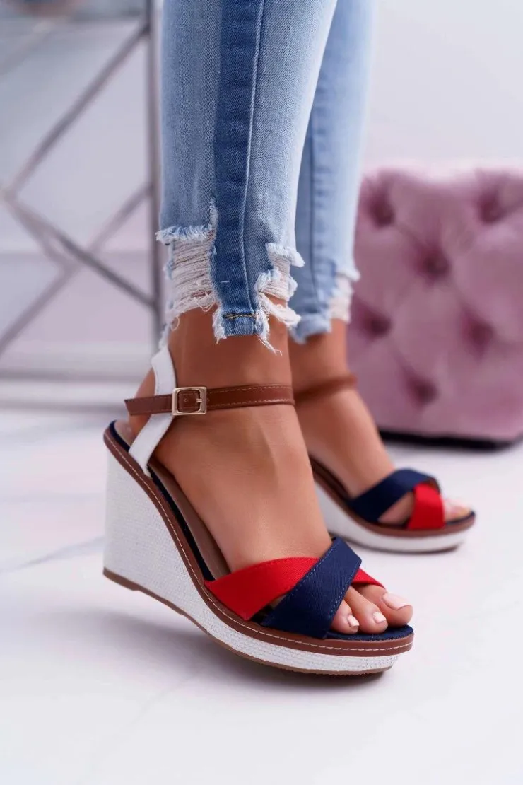 Outlet Boto Sandały Damskie Na Koturnie Granatowe Kaisha