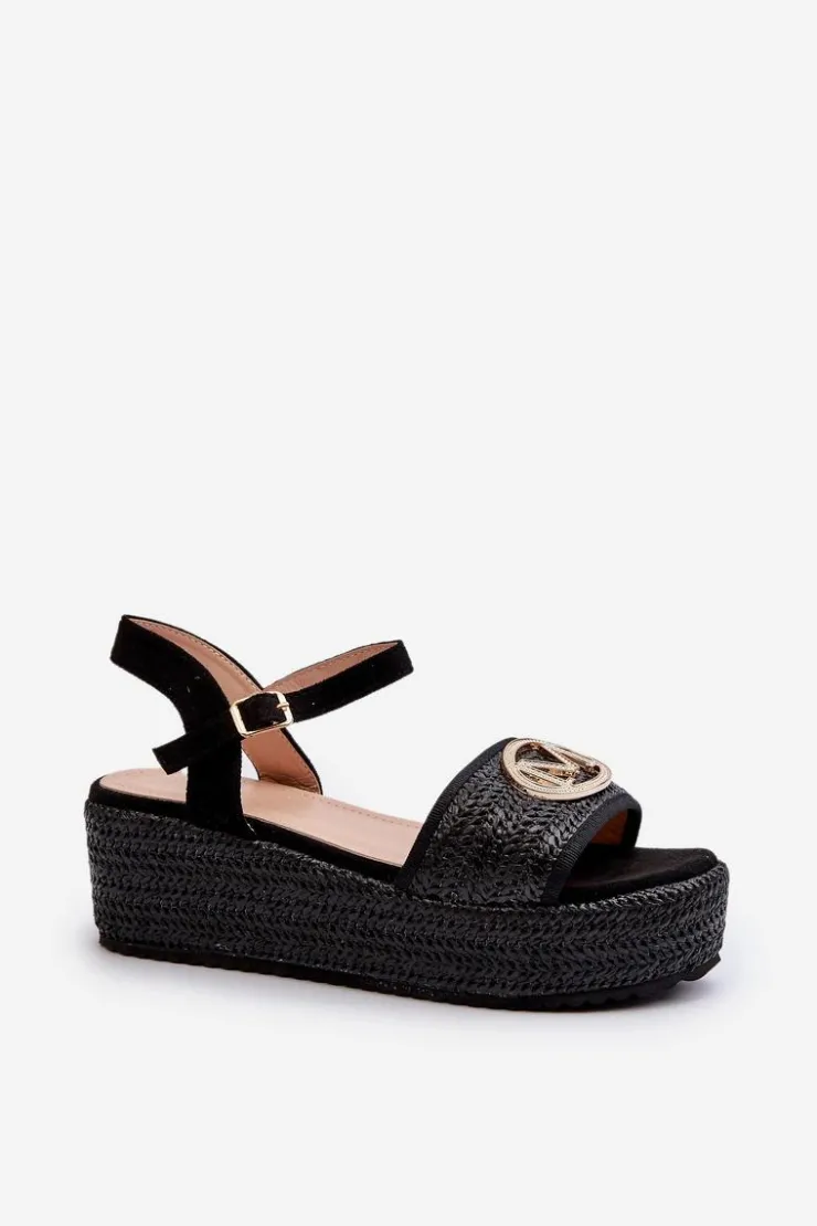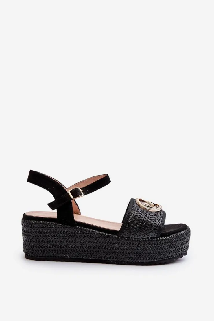 Outlet Boto Sandały Damskie Na Koturnie Z Plecionką Czarne Esalena