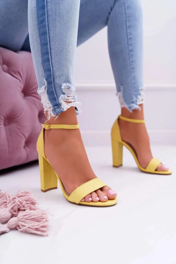 Outlet Boto Sandały Damskie Na Słupku Zamszowe Żółte Anastasie
